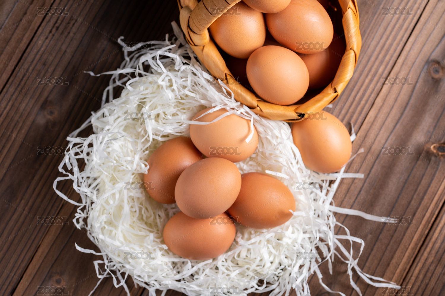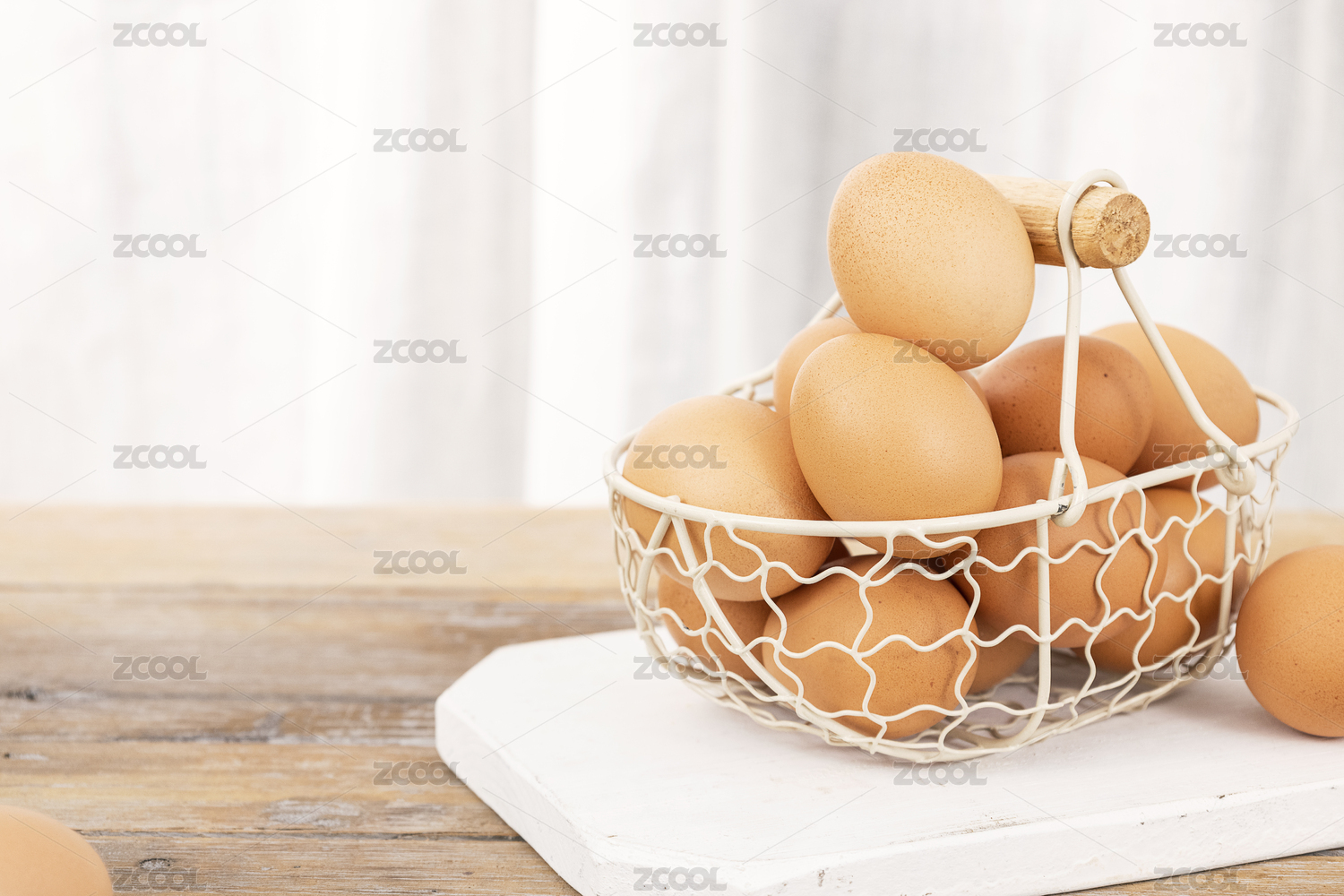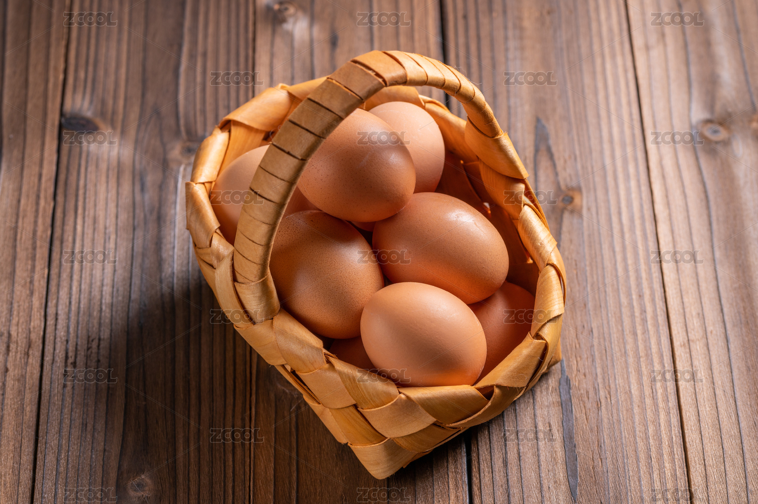 木桌上的一籃子雞蛋