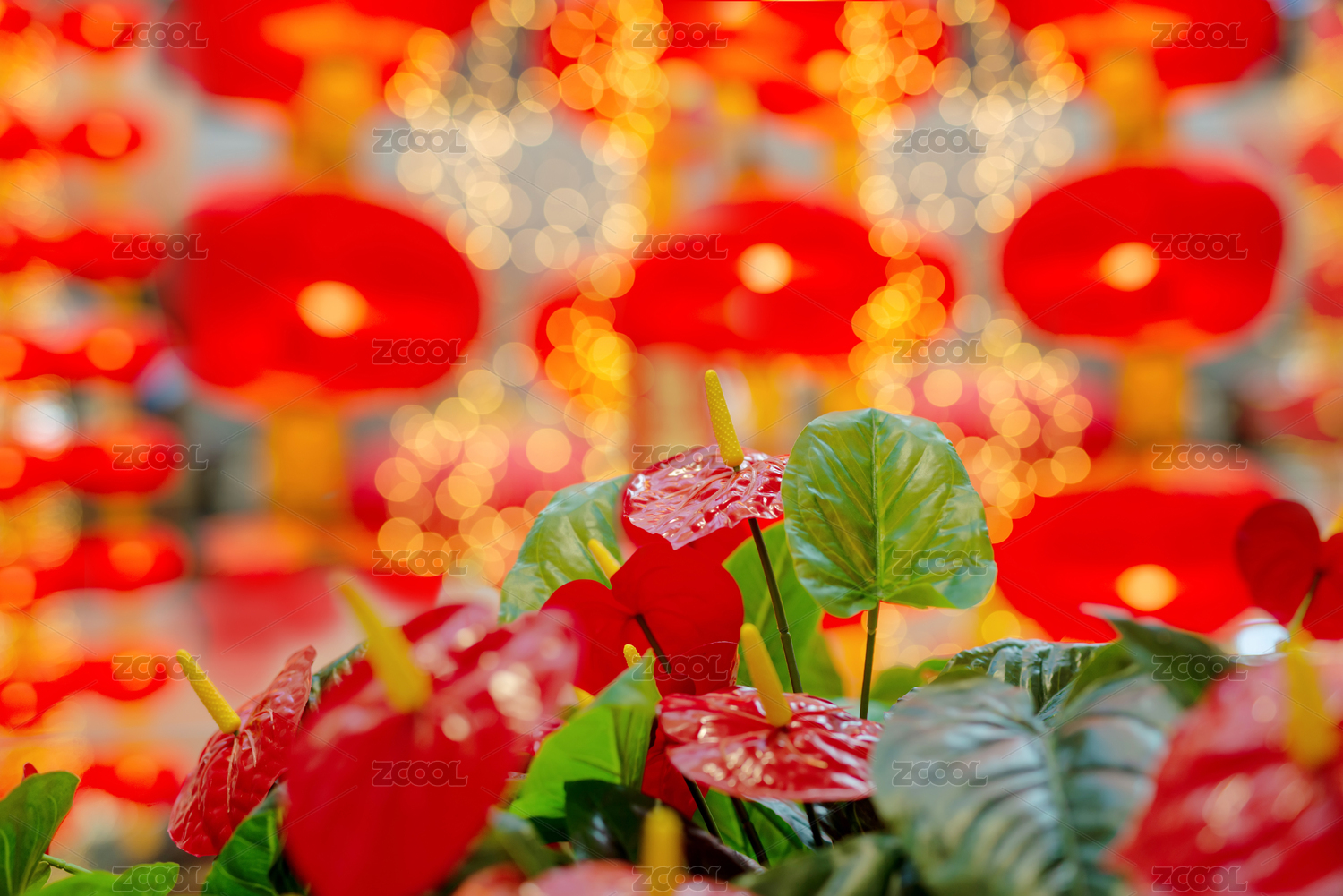過年商場里的紅掌花紅燈籠