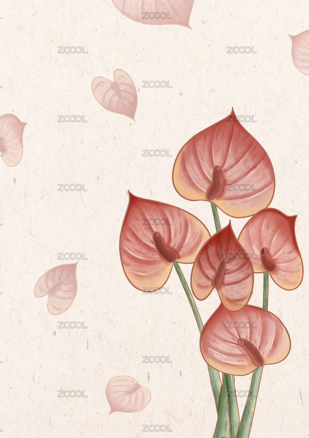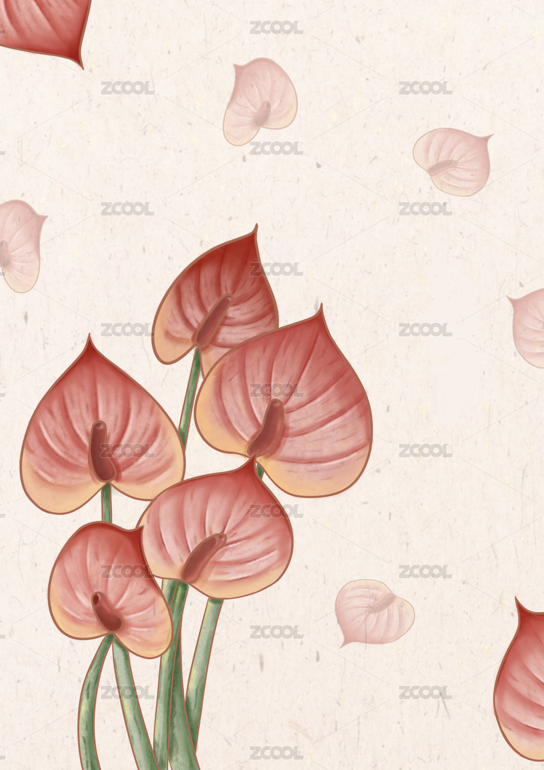 紅掌花植物背景肌理插畫