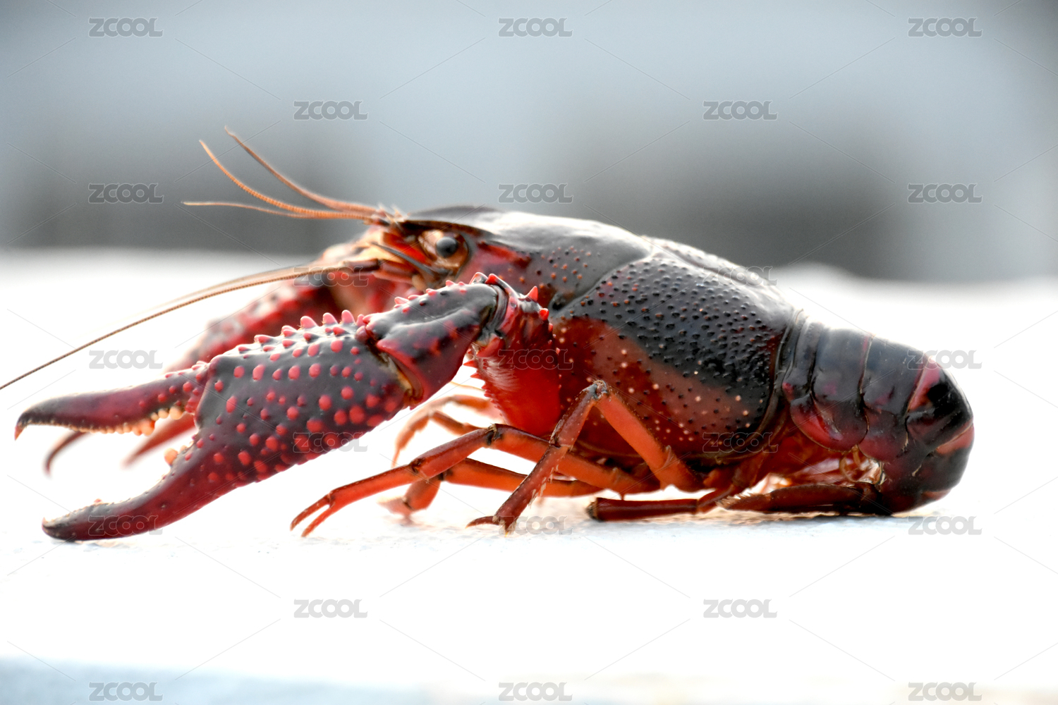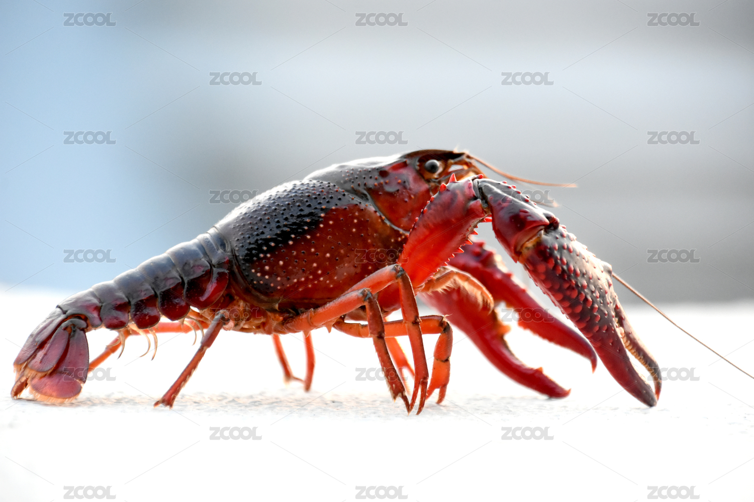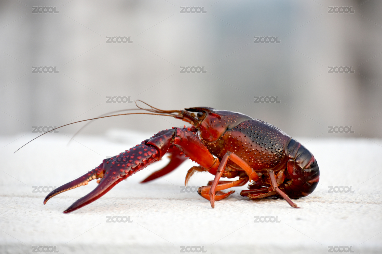 簡潔背景下一只紅色的小龍蝦清晰特寫