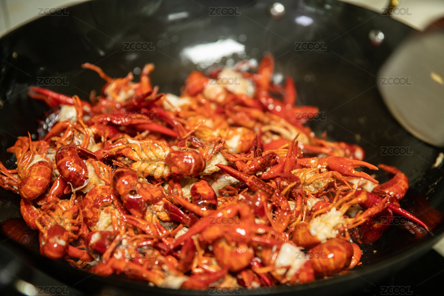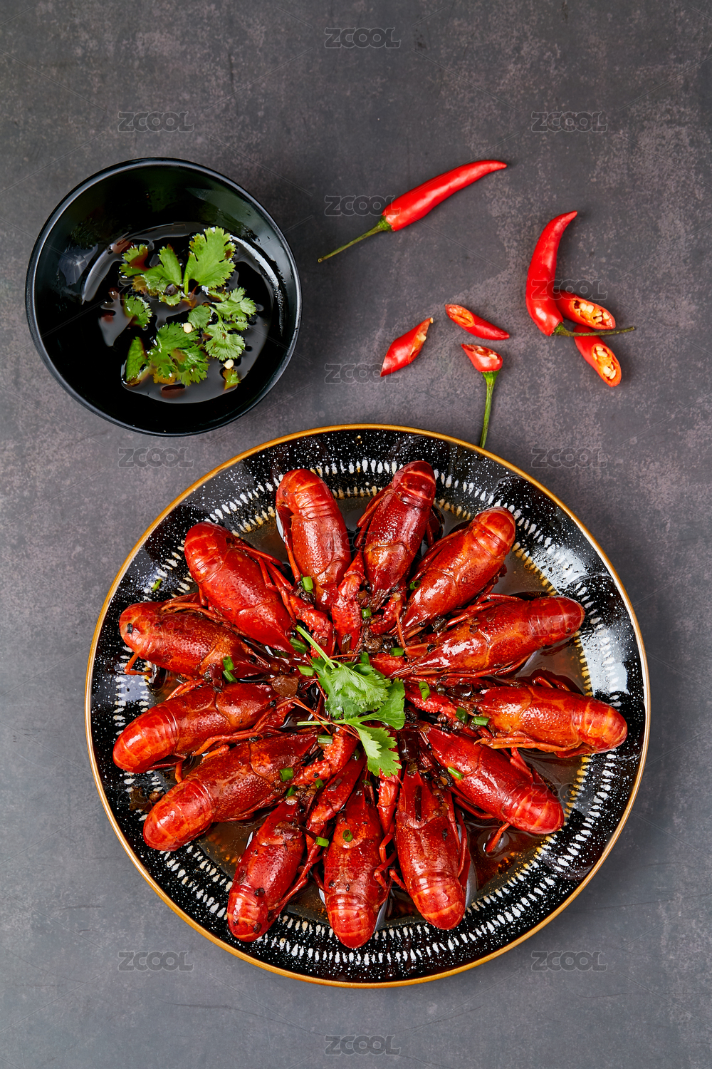 深色背景下的麻辣十三香小龍蝦