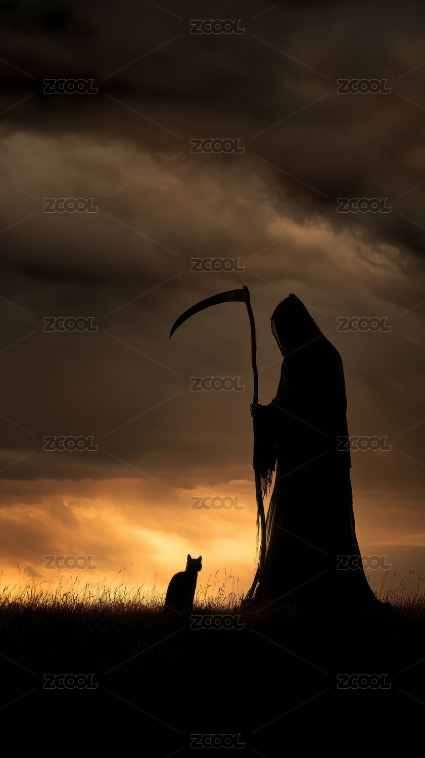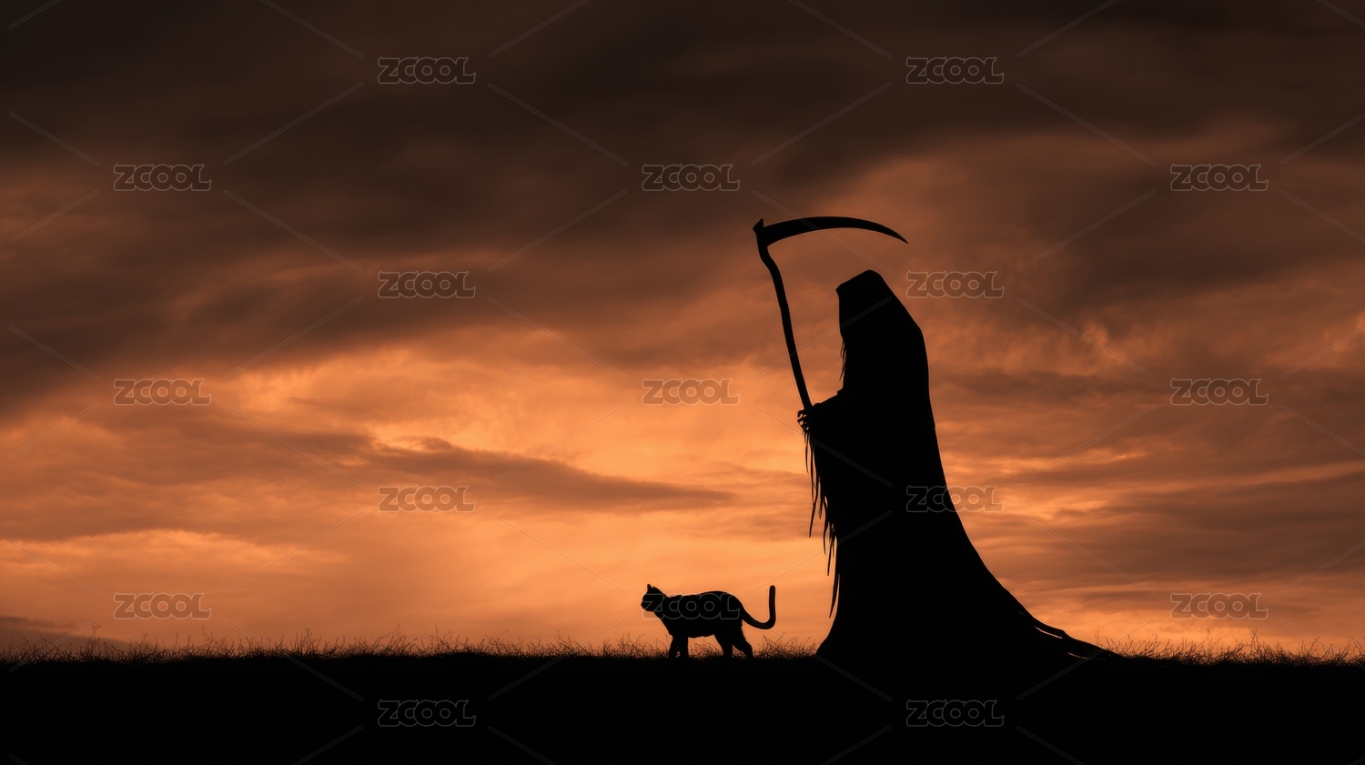 萬(wàn)圣節(jié)的死神與南瓜燈美式暗黑風(fēng)格插畫