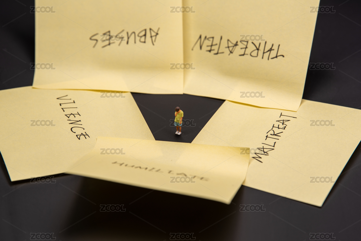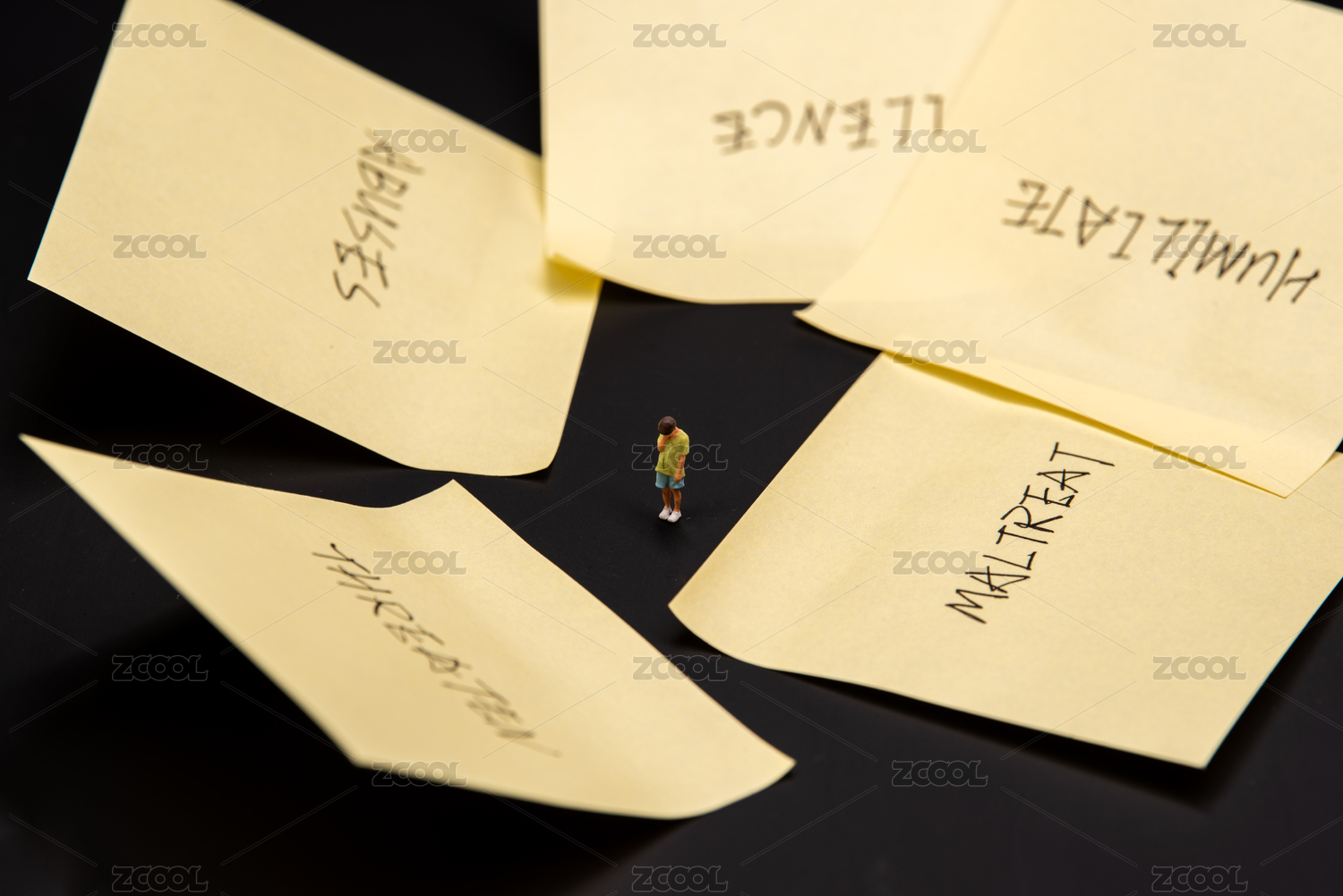 桌子上疊滿便簽紙的校園暴力創(chuàng)意