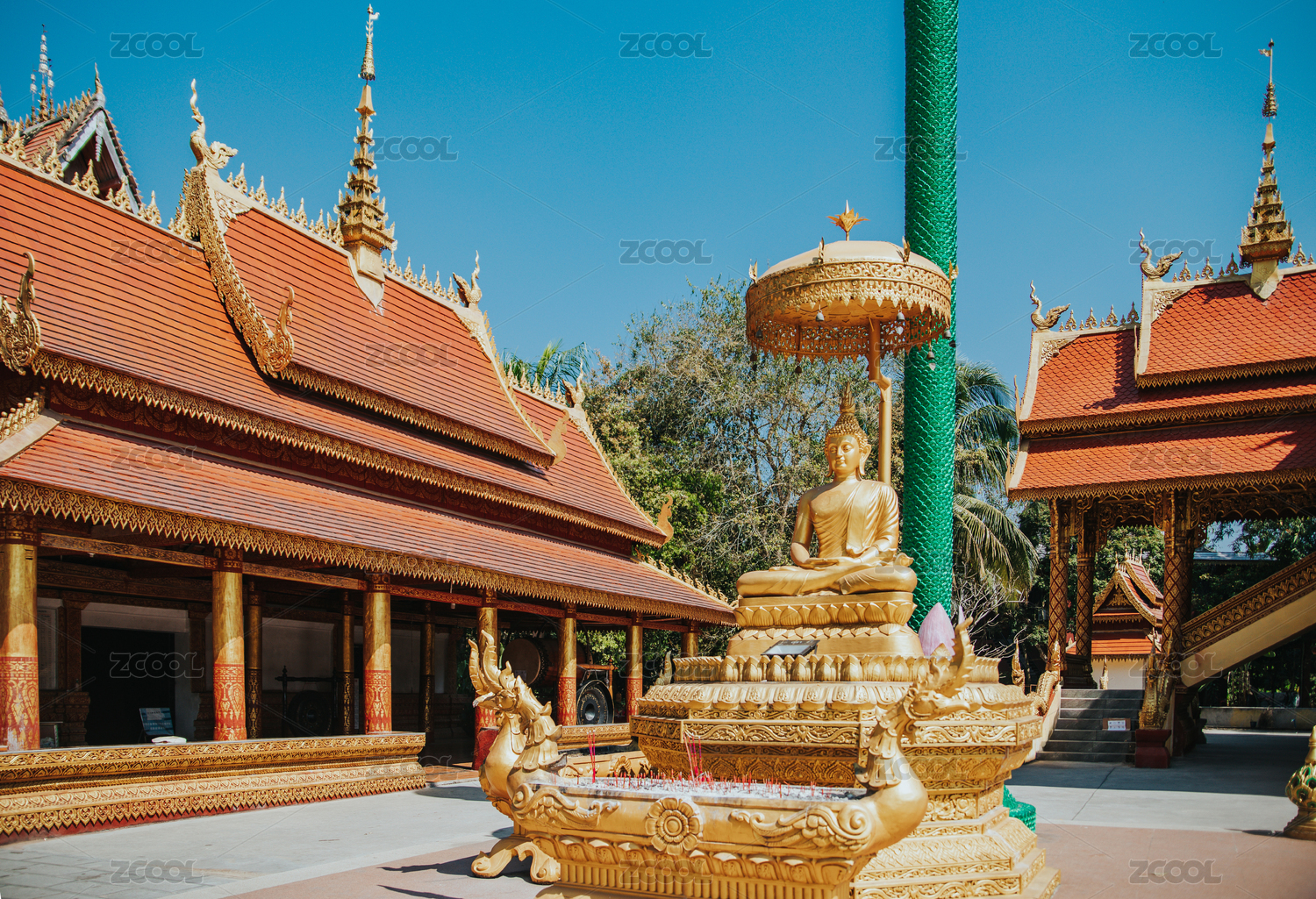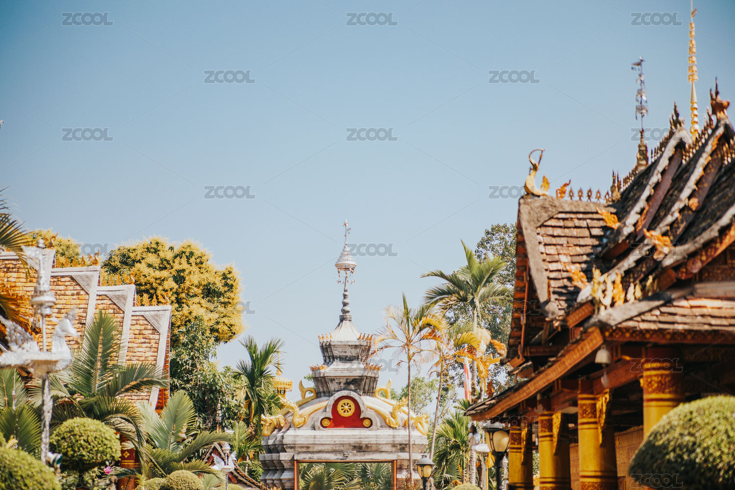 云南西雙版納傣族園內(nèi)的佛寺建筑景觀