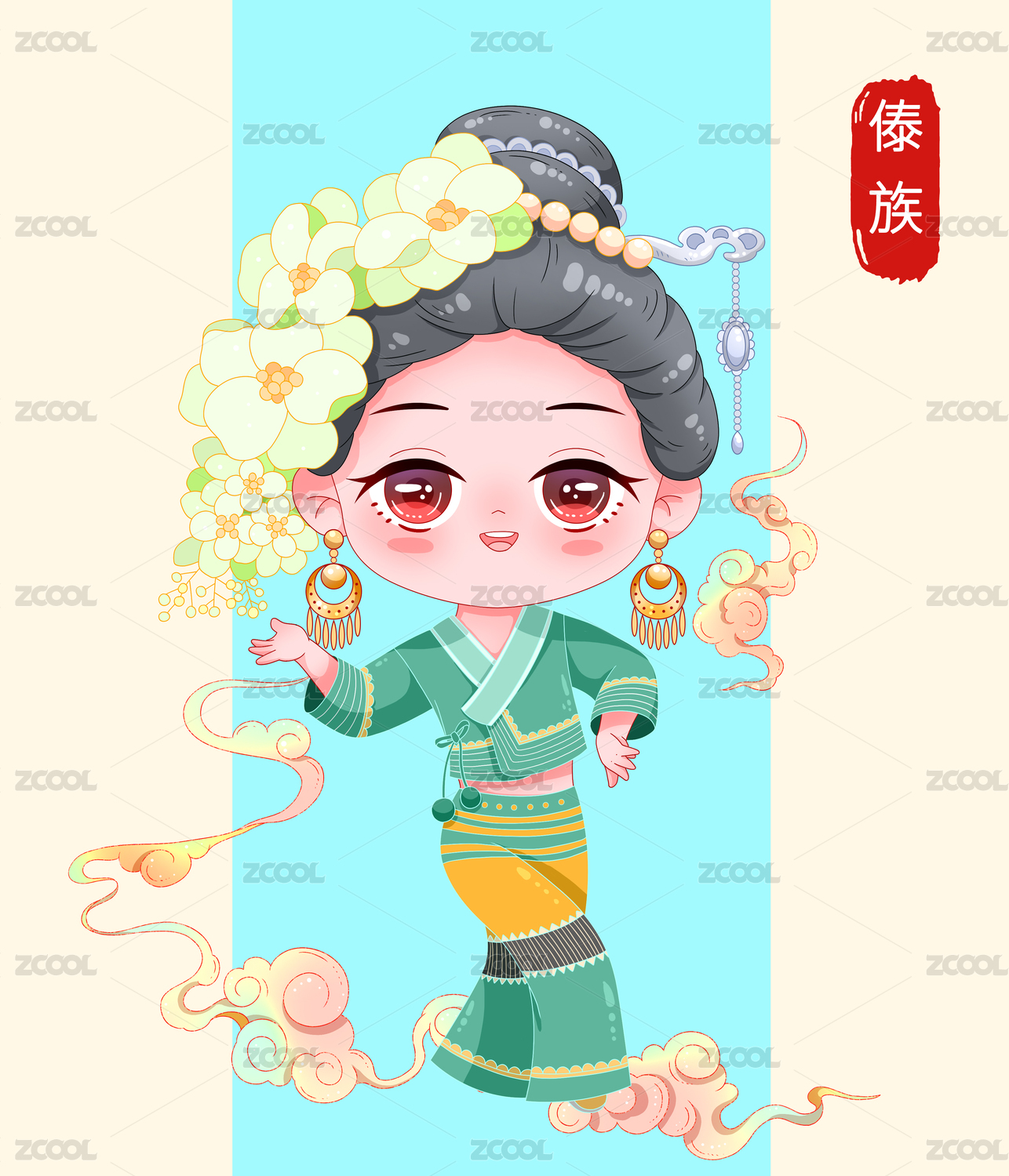 國(guó)潮卡通可愛(ài)少數(shù)民族傣族少女
