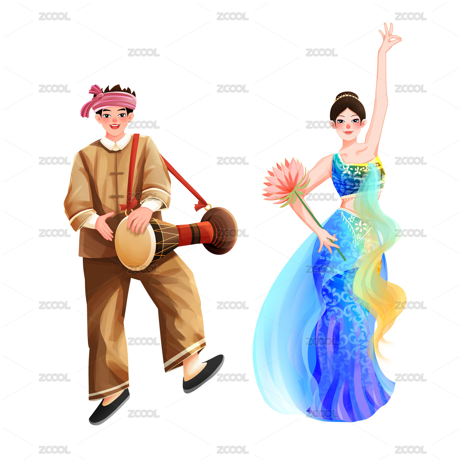 五十六個(gè)民族之傣族少年少女插畫(huà)元素