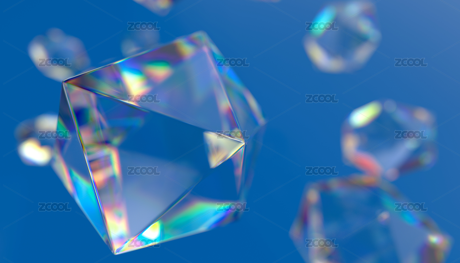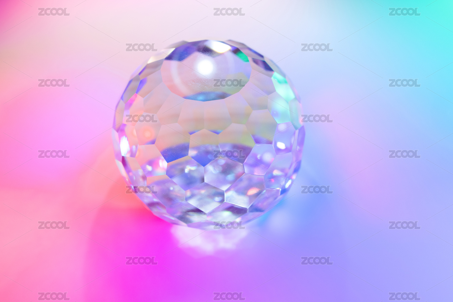 彩色光線下的透明水晶