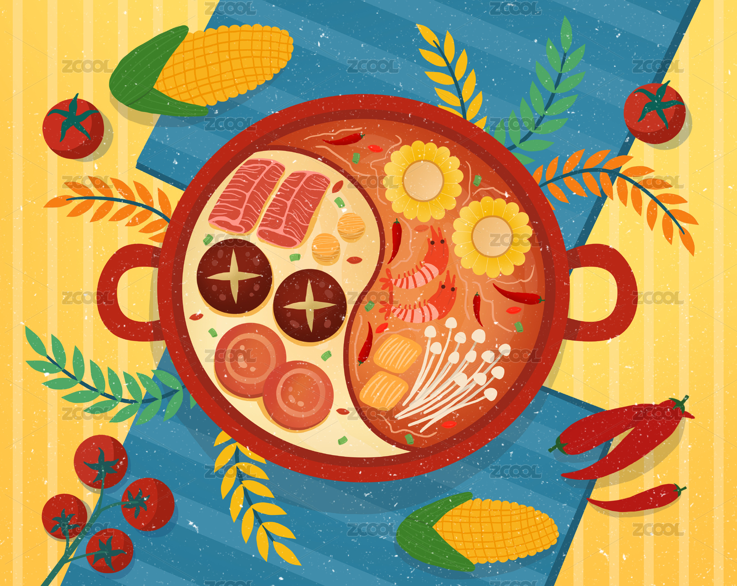 手繪卡通扁平風(fēng)火鍋美食海報(bào)插畫