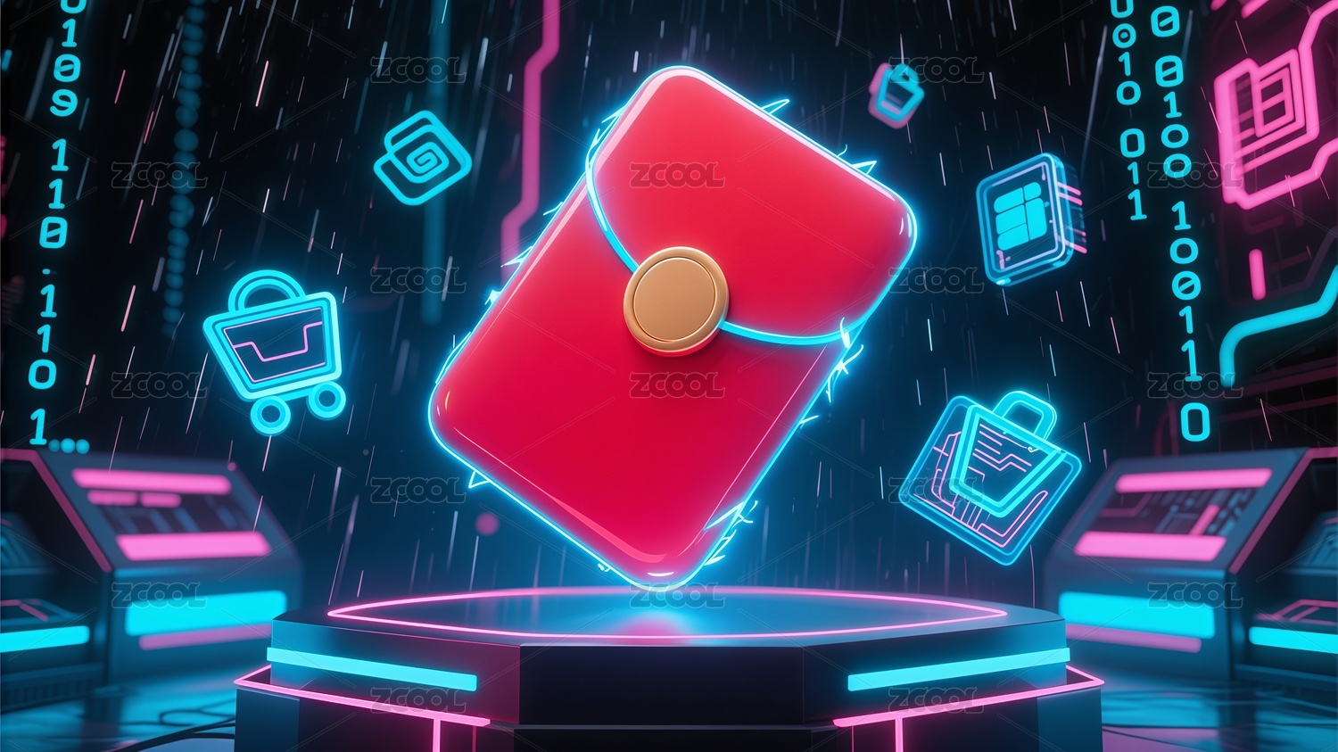 3D賽博朋克風(fēng)紅包電商促銷插畫