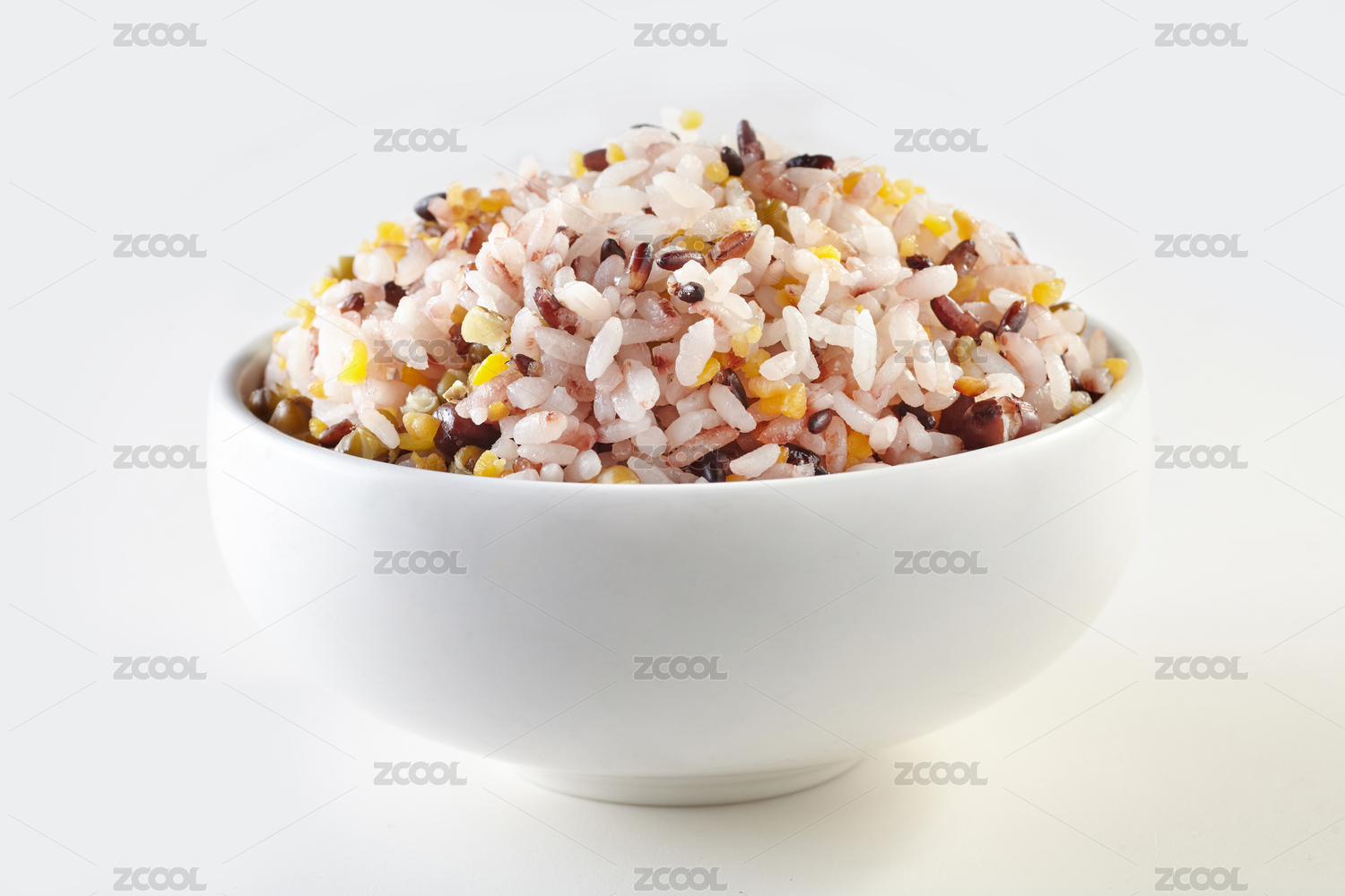 一碗冒著熱氣兒的五顏六色的雜糧飯