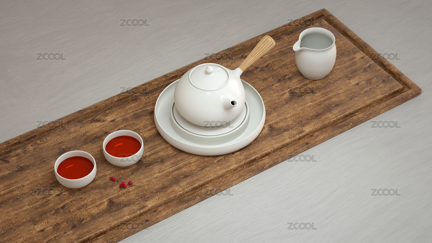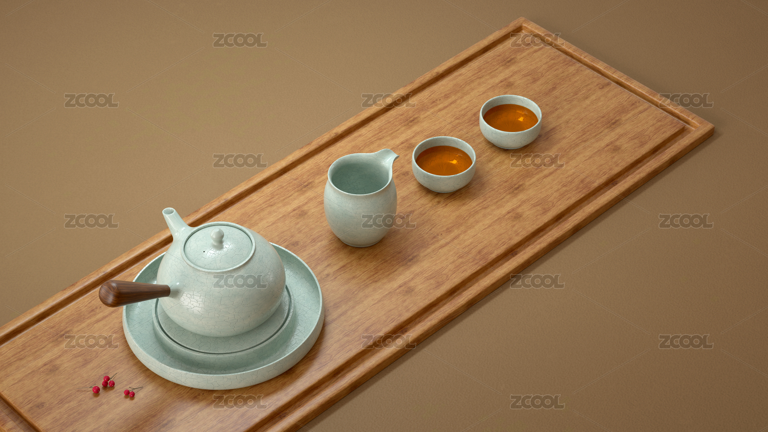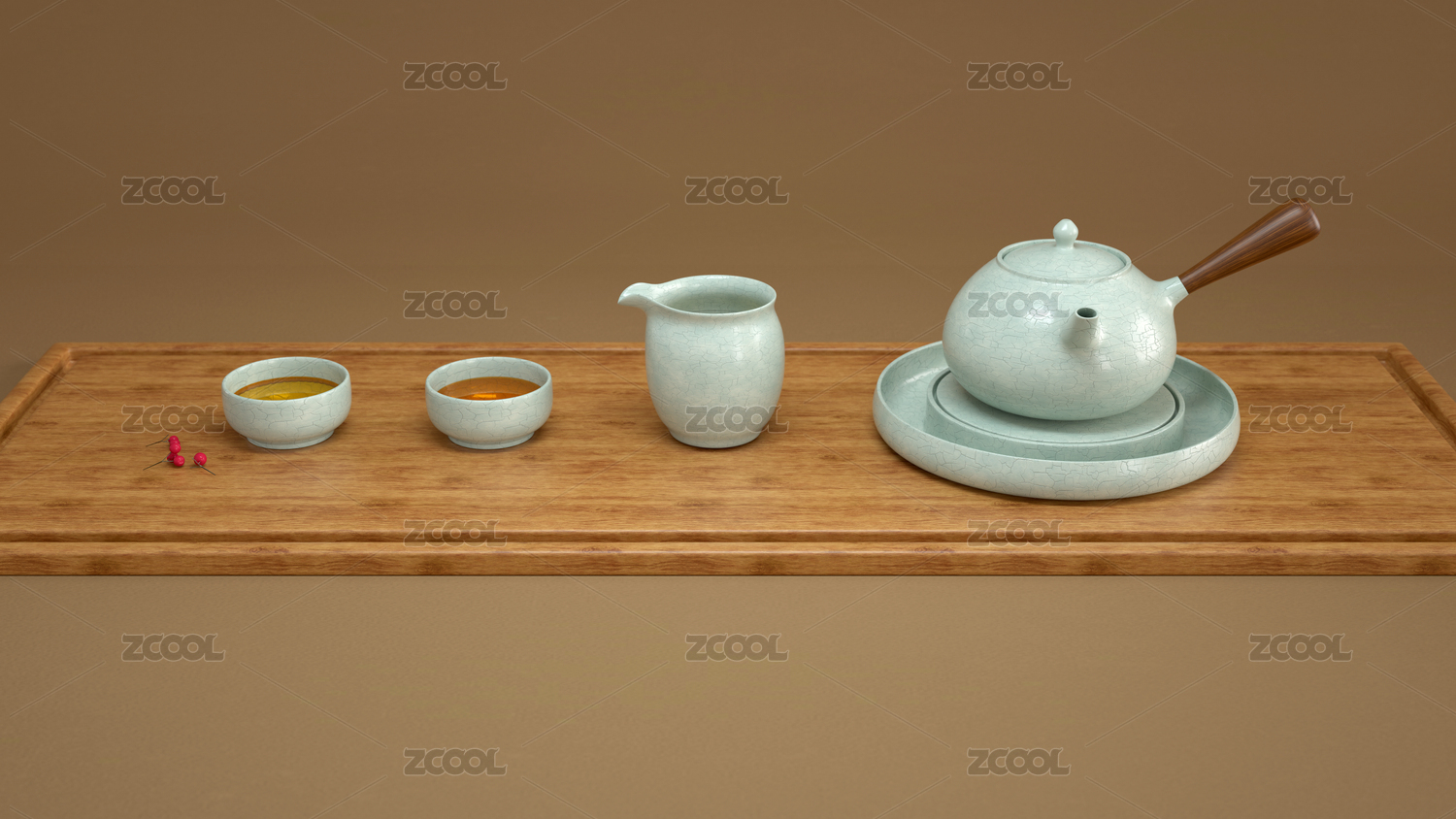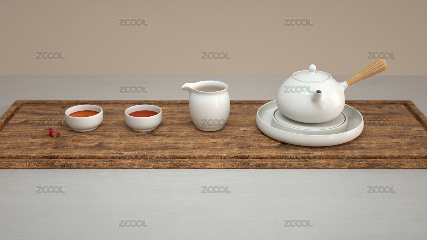 中國(guó)風(fēng)題材的茶壺、公道杯和茶杯組成的茶具套裝,3d渲染