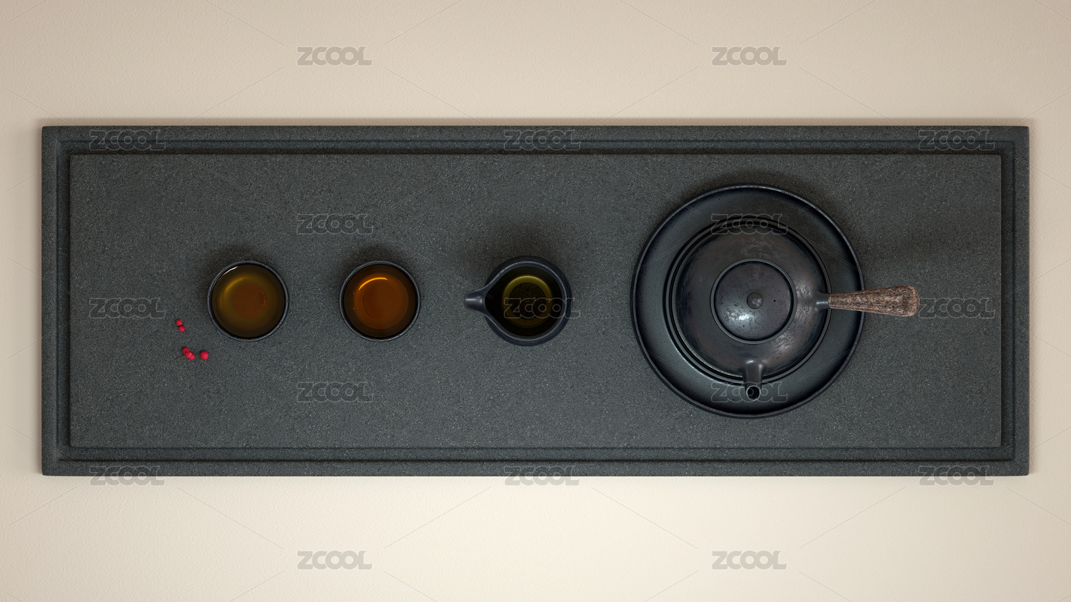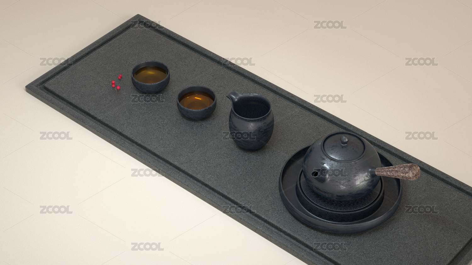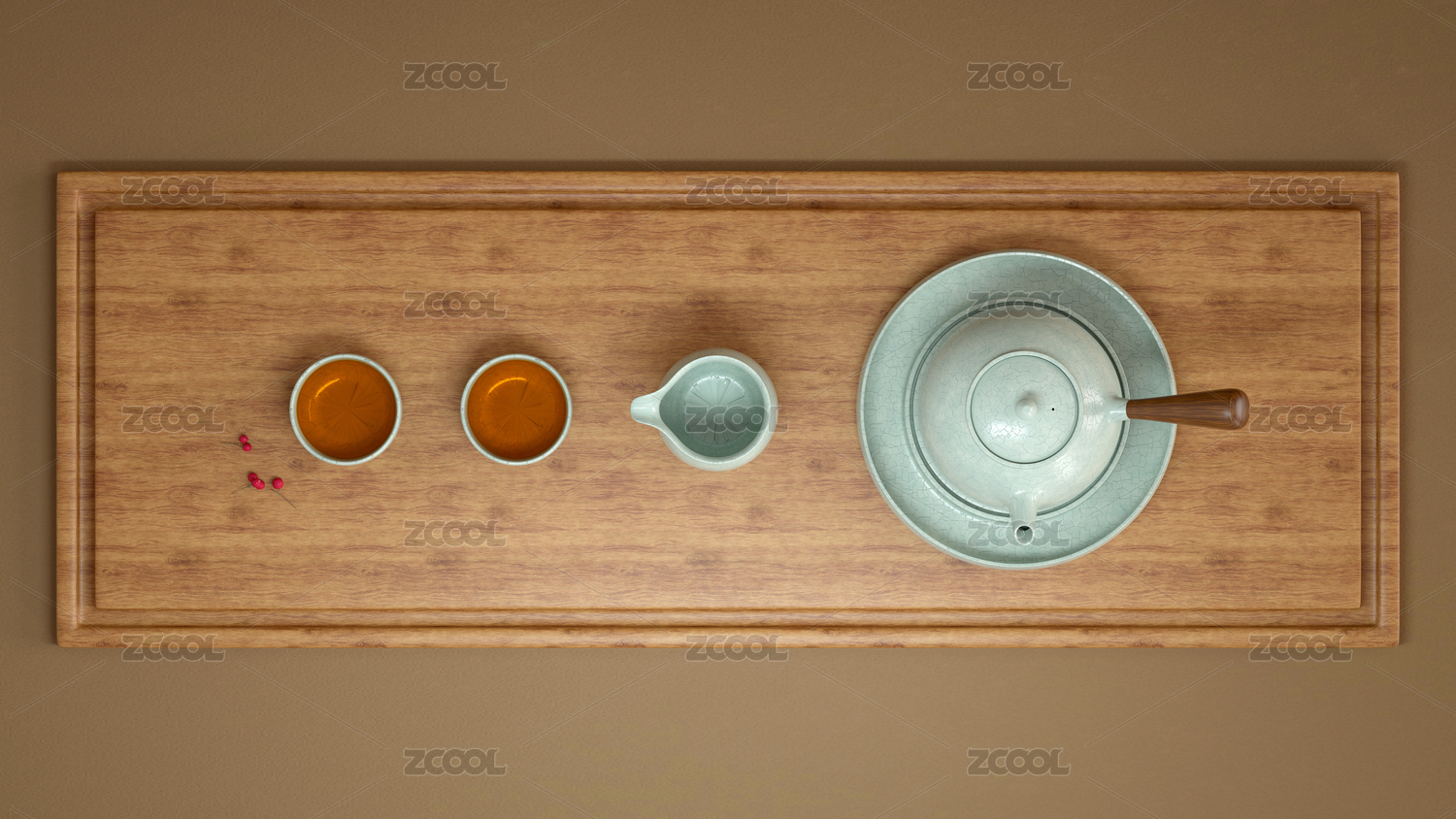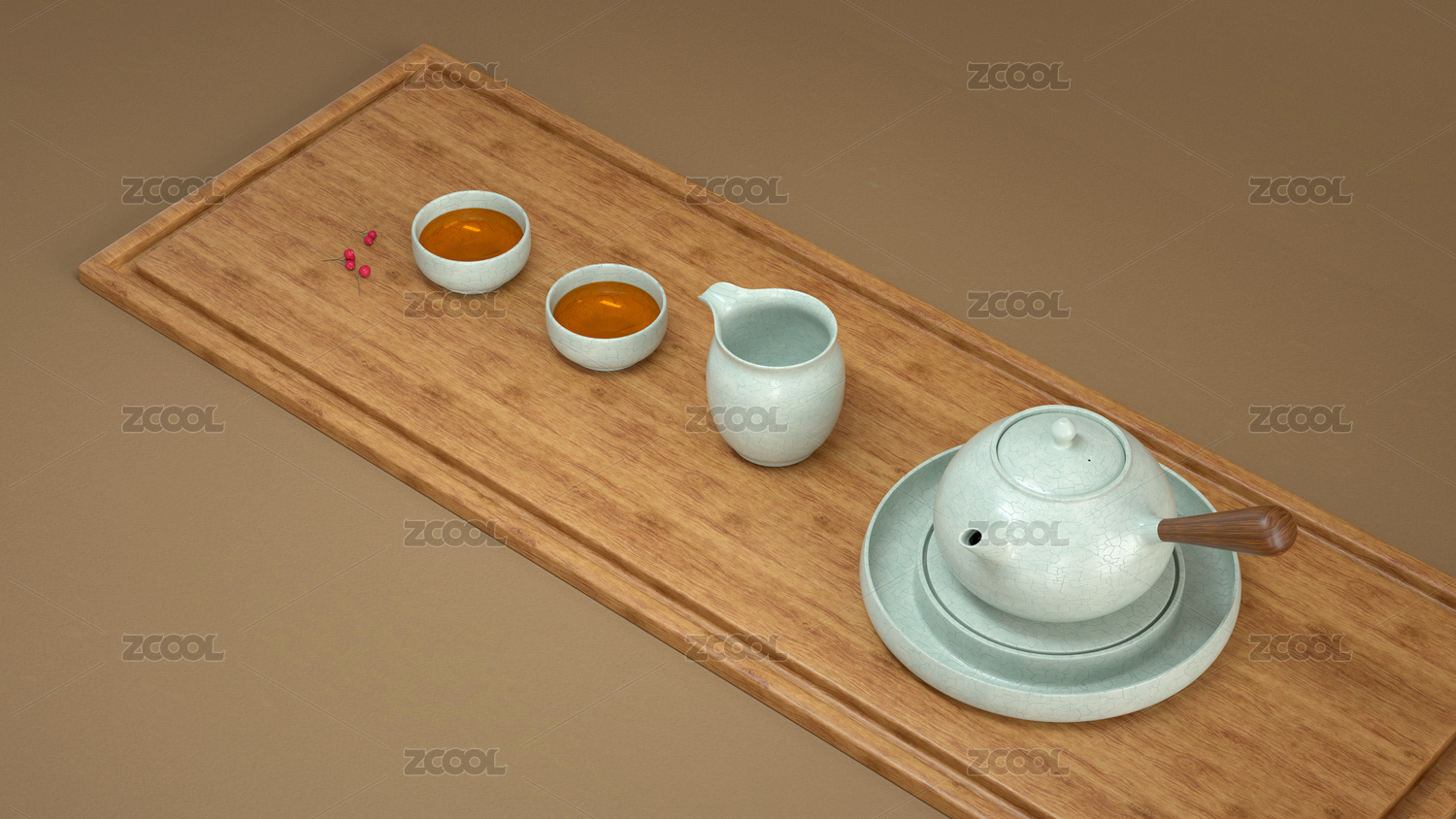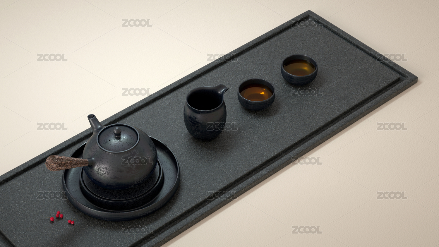 中國(guó)風(fēng)題材的茶壺、公道杯和茶杯組成的茶具套裝,3d渲染