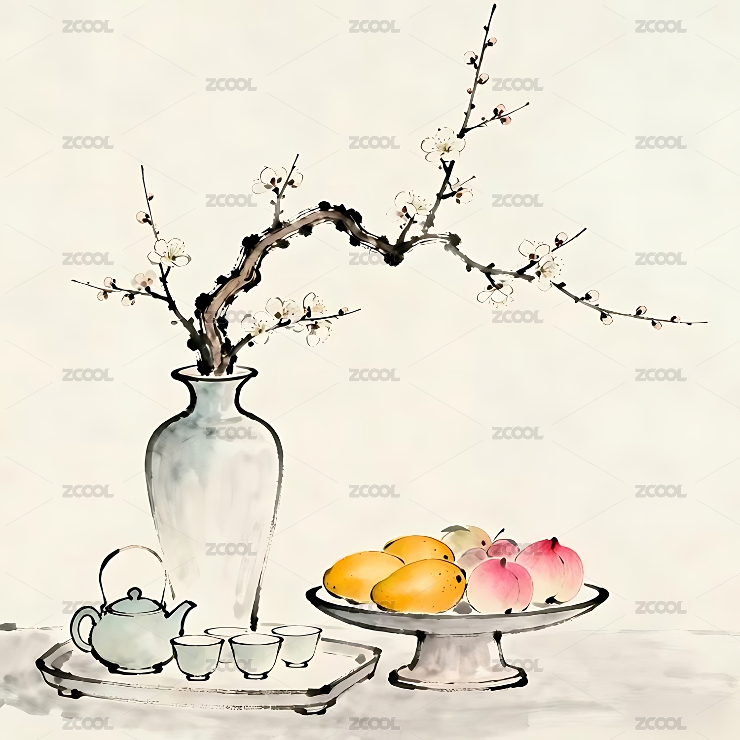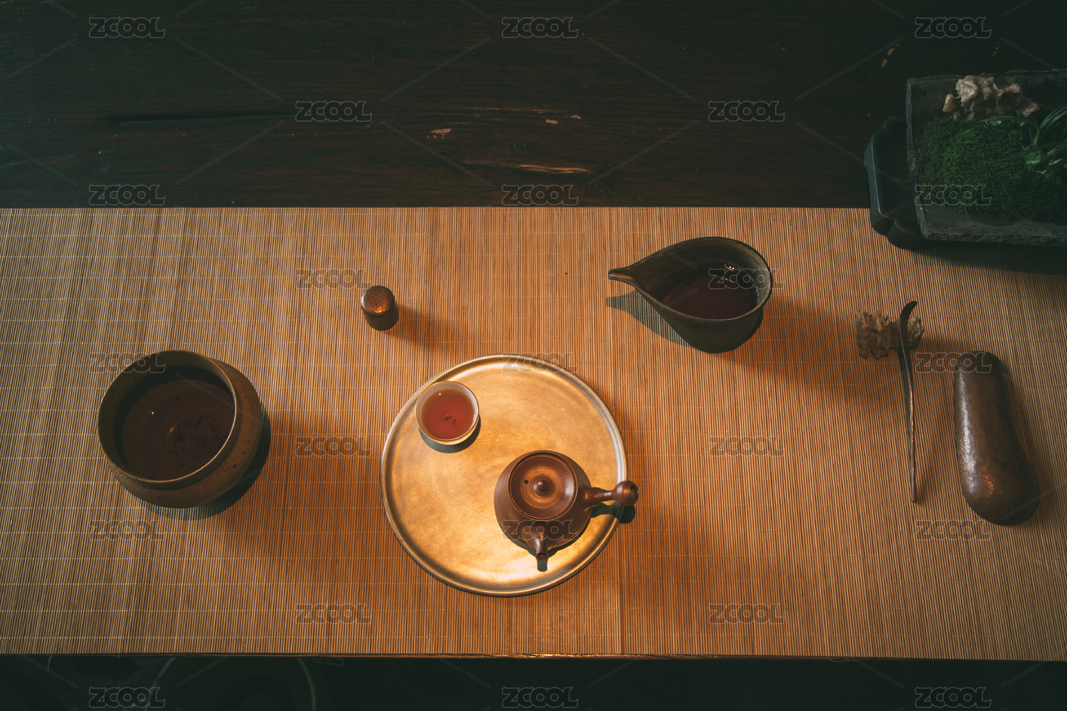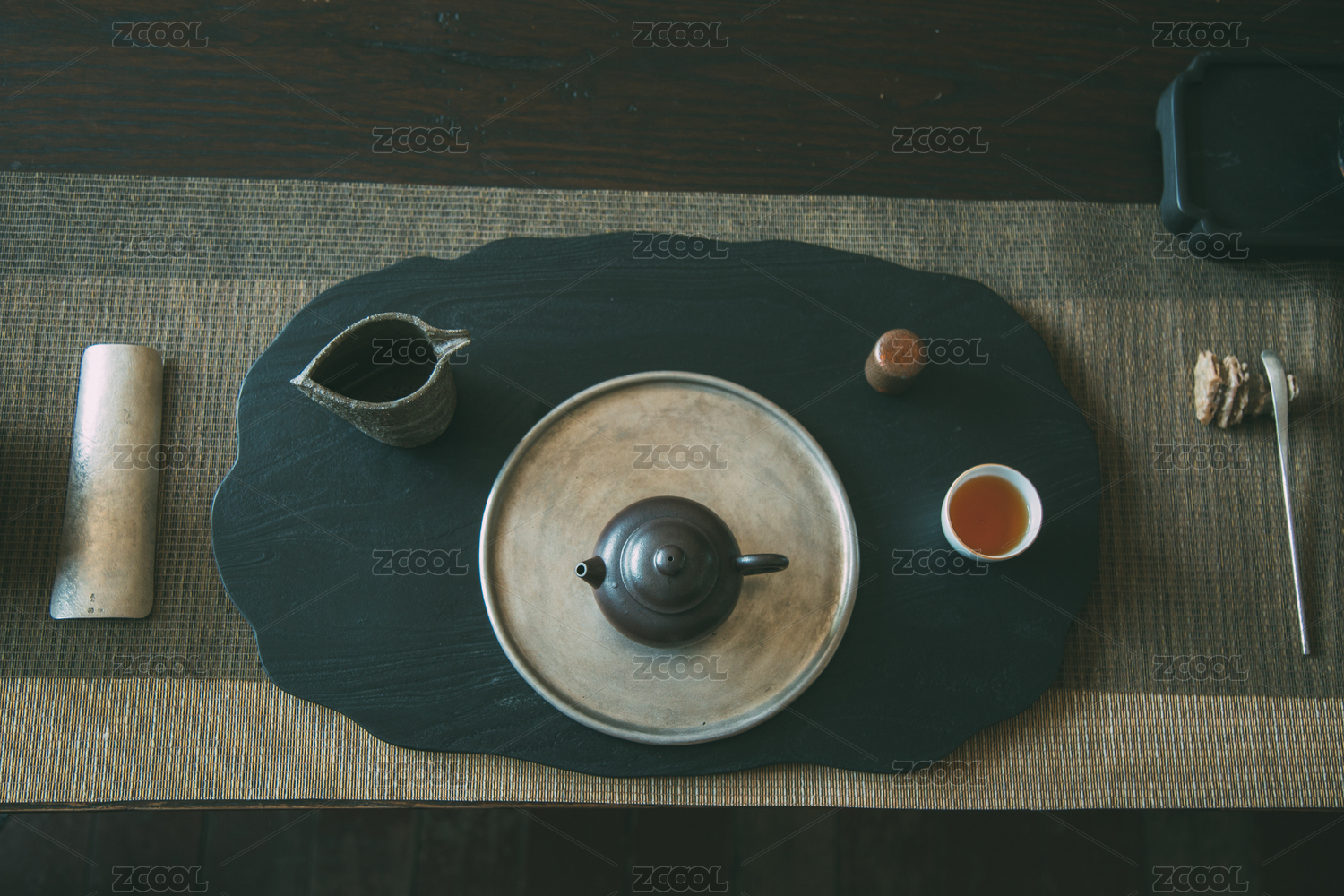 茶桌上的古畫(huà)壺承茶盤(pán)