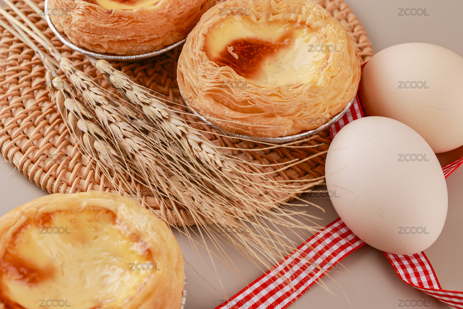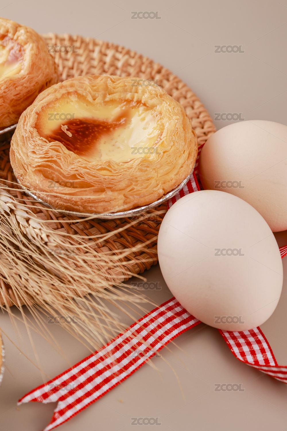 蛋撻雞蛋麥穗白色背景