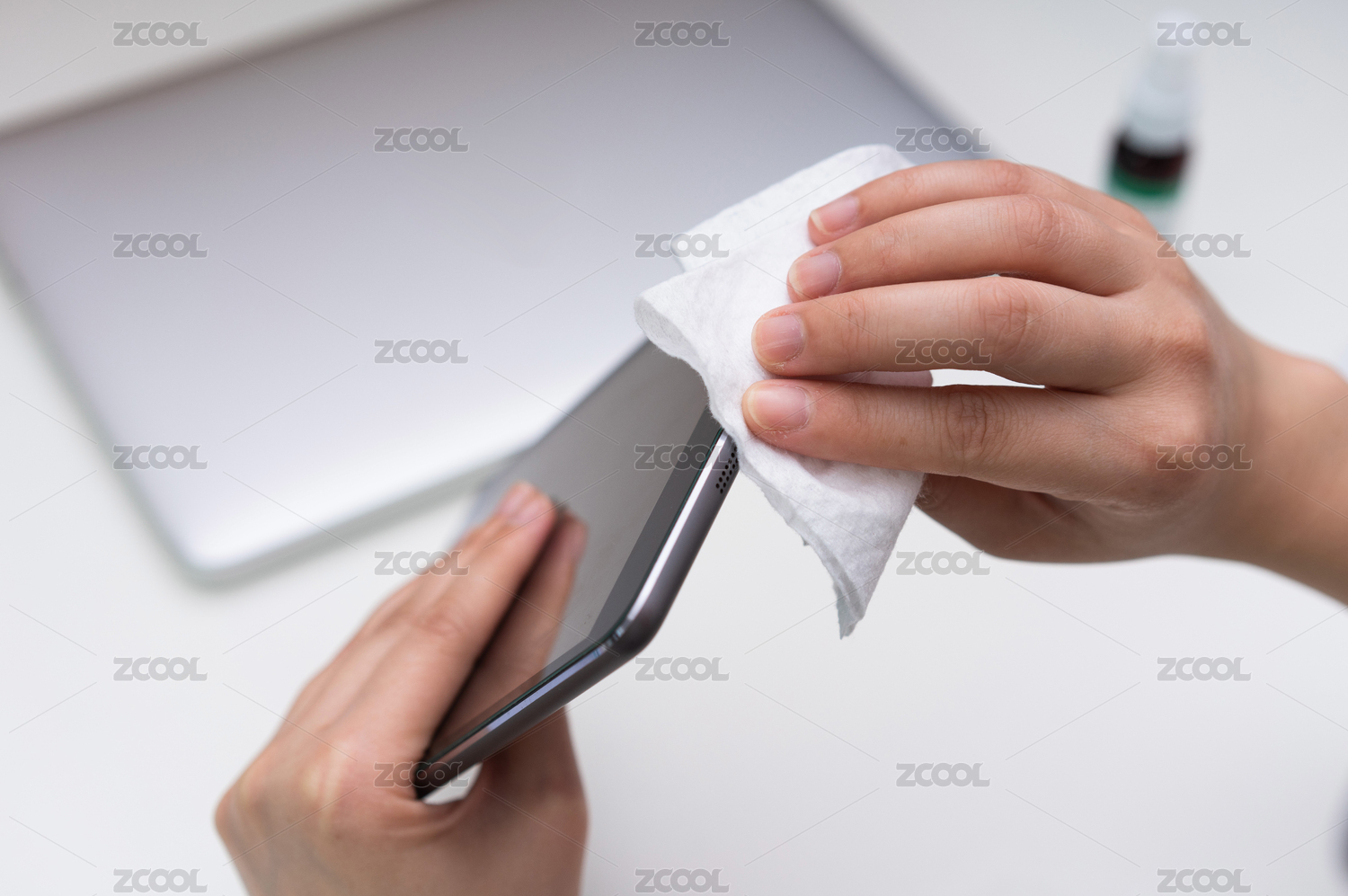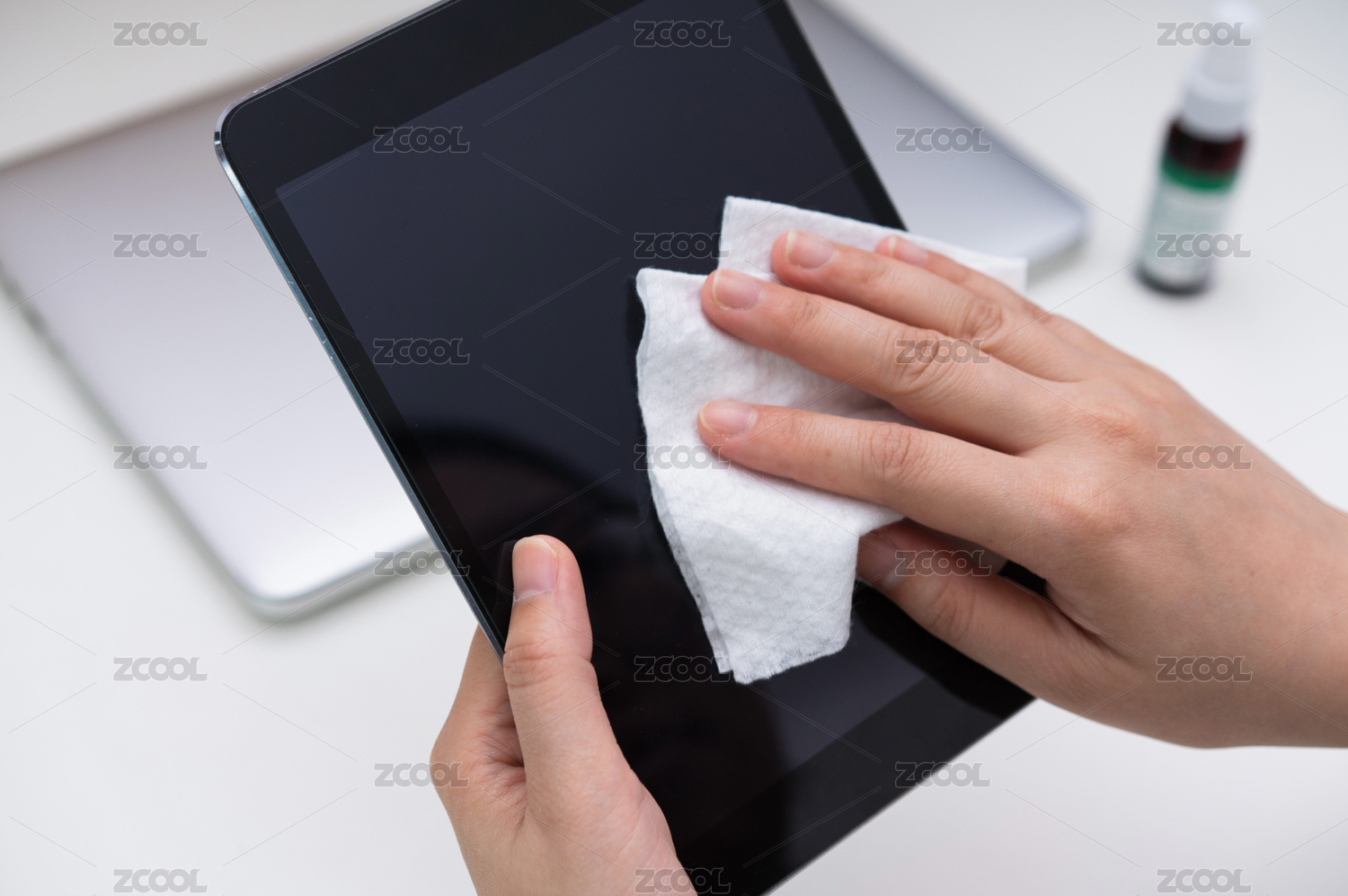 亞裔女性清潔辦公電子設(shè)備