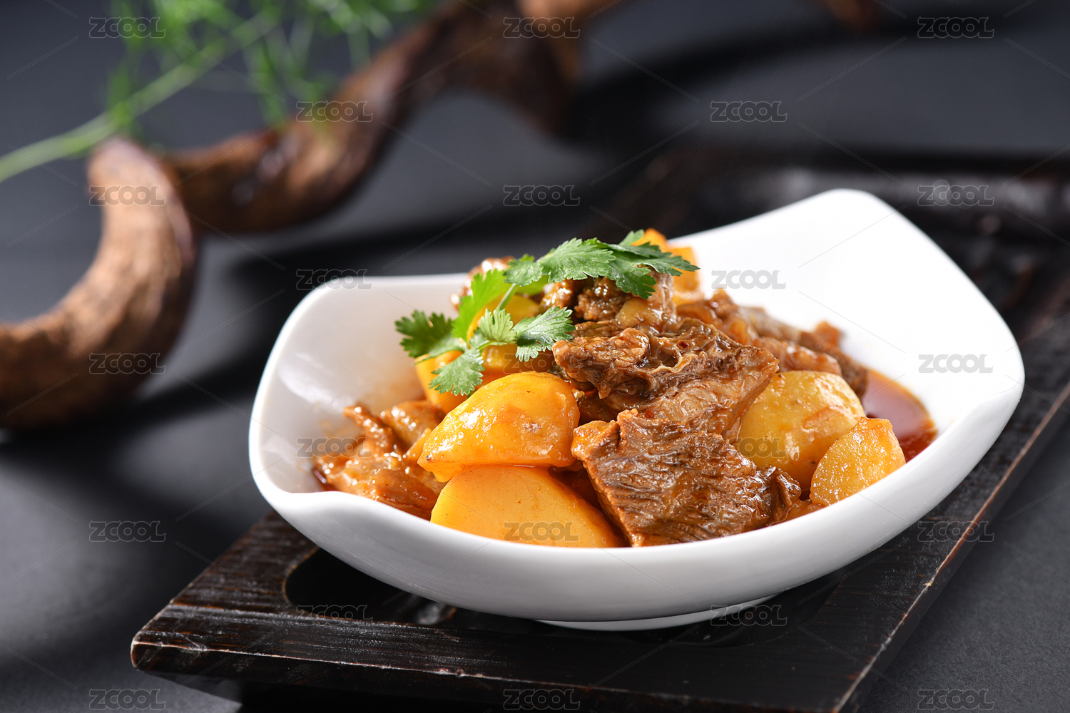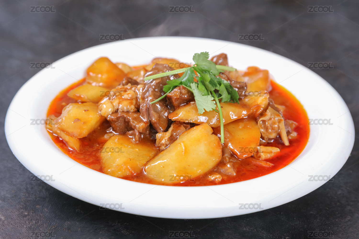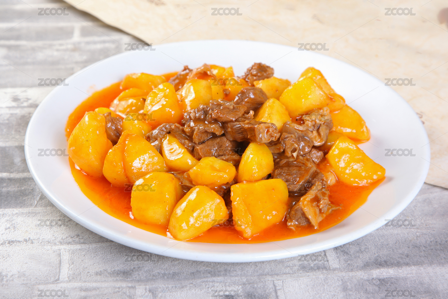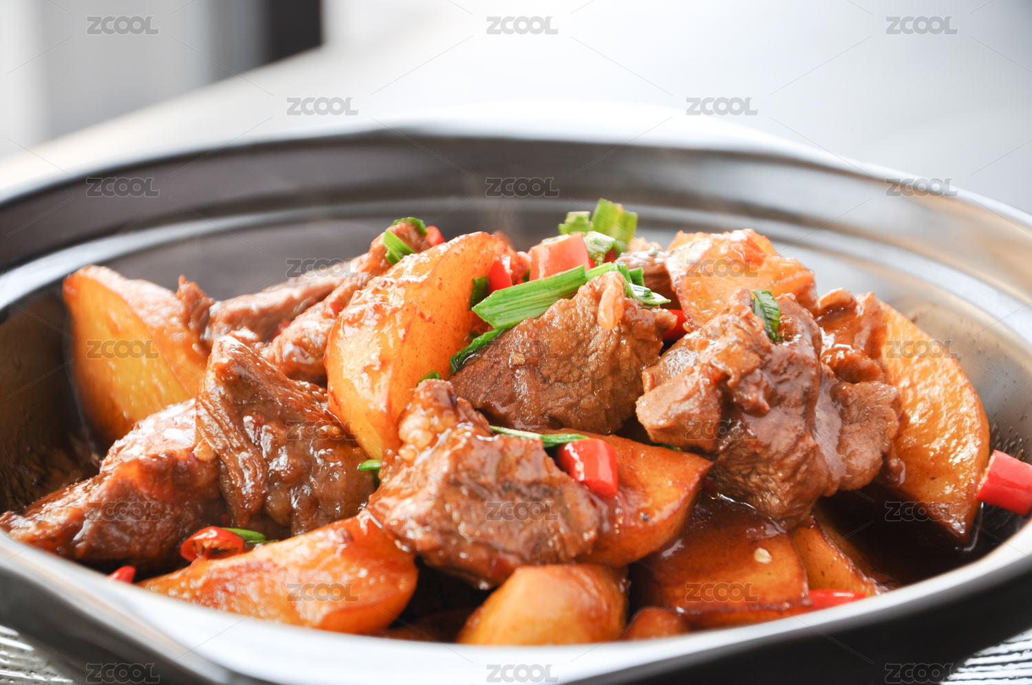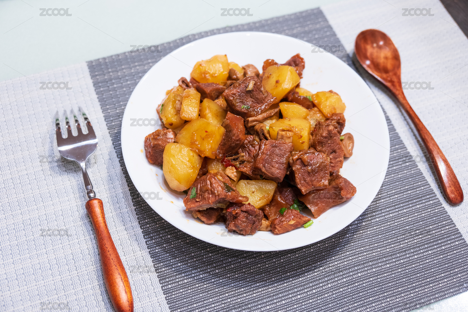 一盤(pán)土豆燒牛肉特寫(xiě)