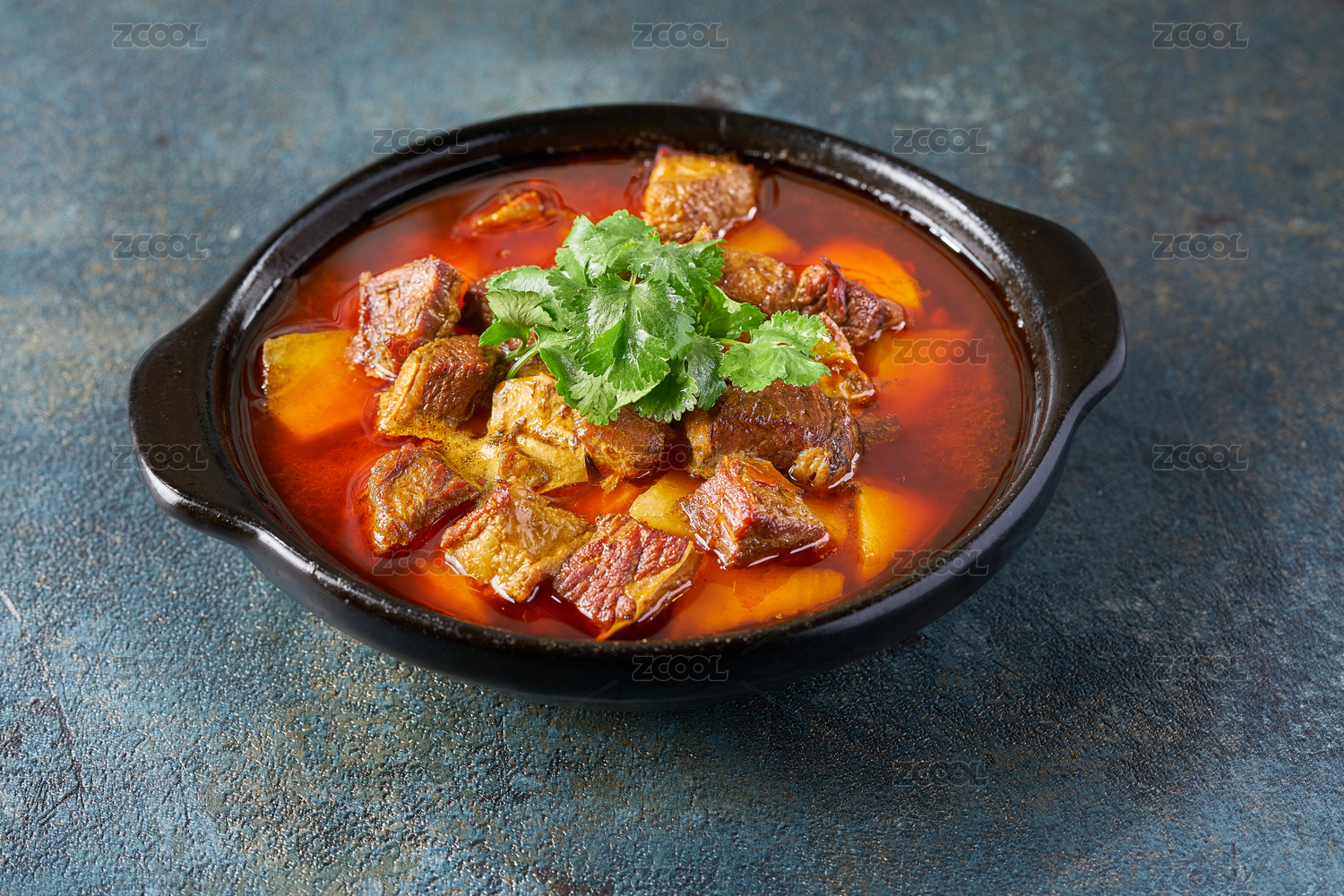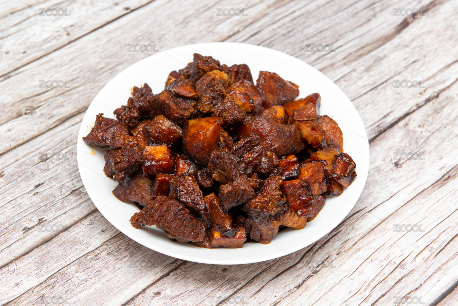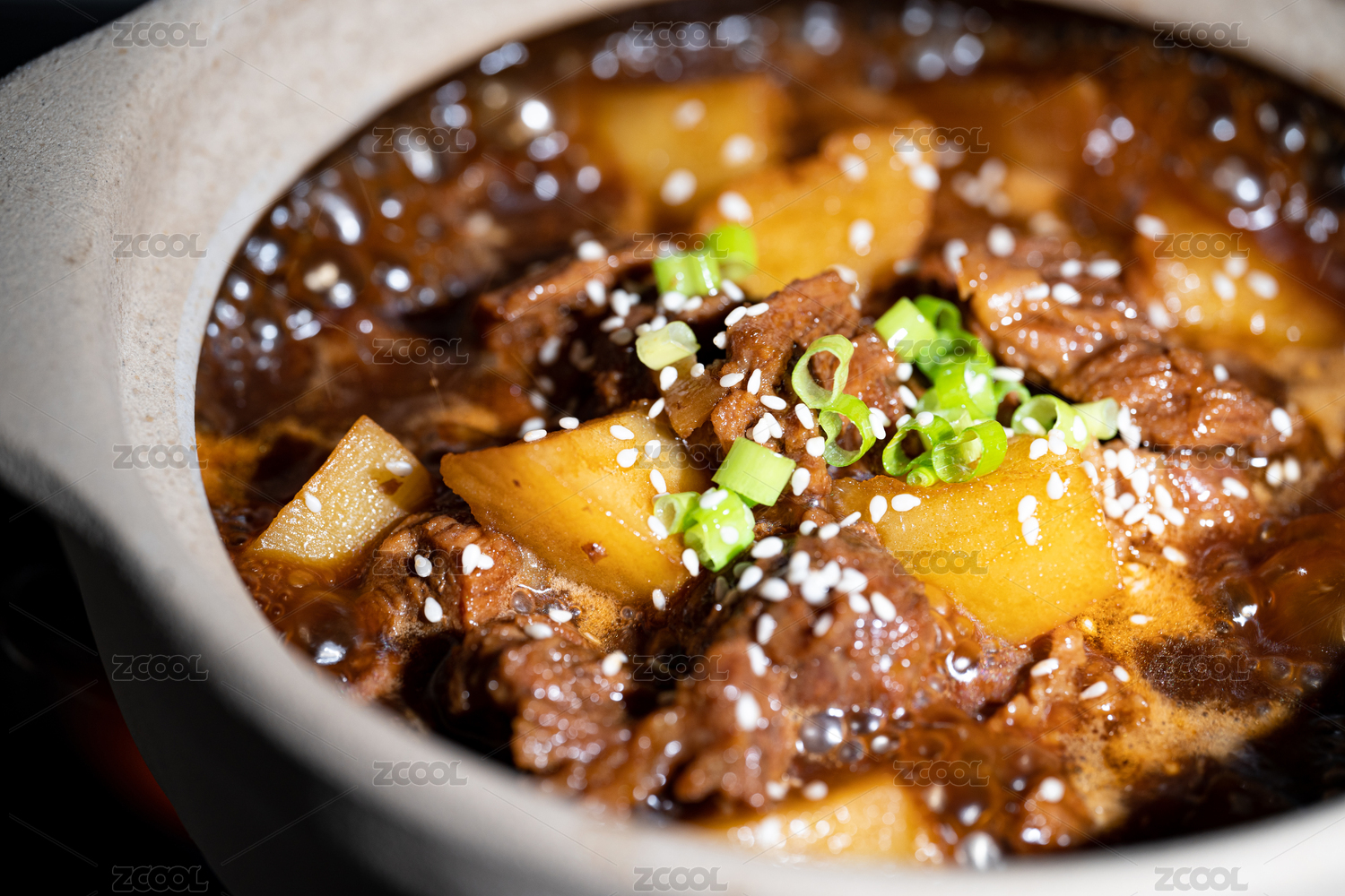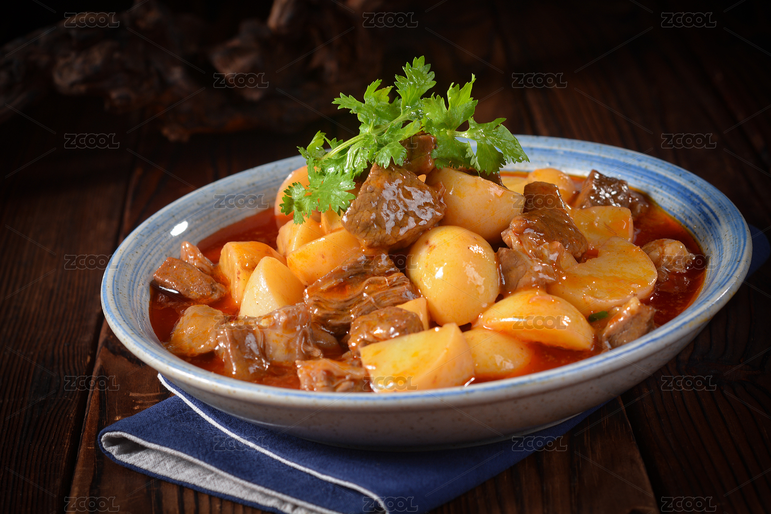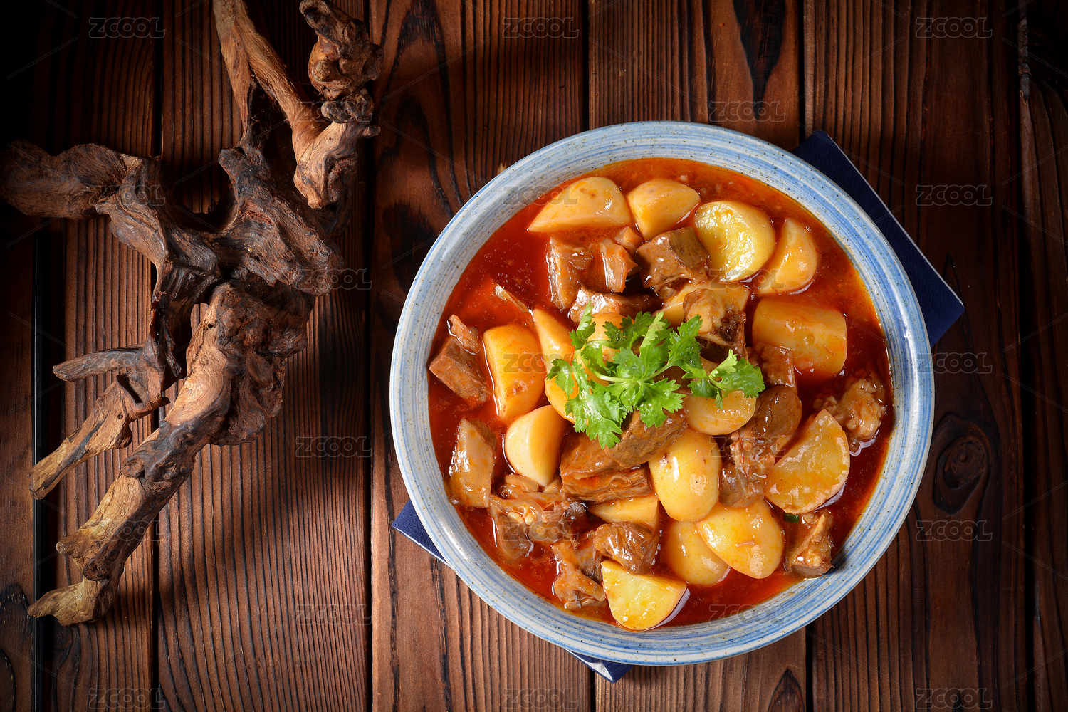 一盤(pán)土豆燒牛肉特寫(xiě)
