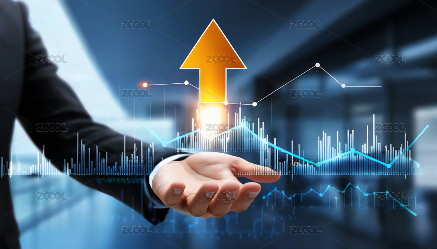 商務(wù)人士手持金色上升箭頭圖標(biāo)