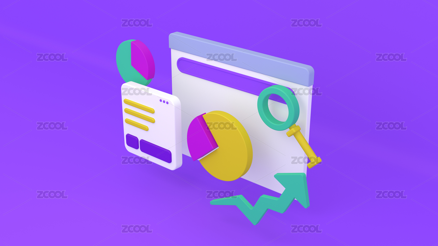 放大鏡百分比箭頭立體圖形圖標(biāo)