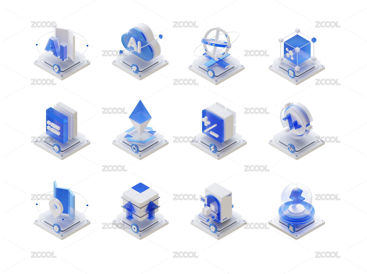 藍(lán)白色立體科技圖標(biāo)