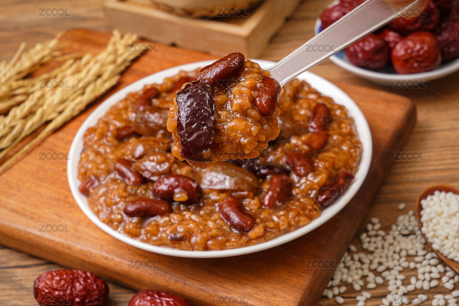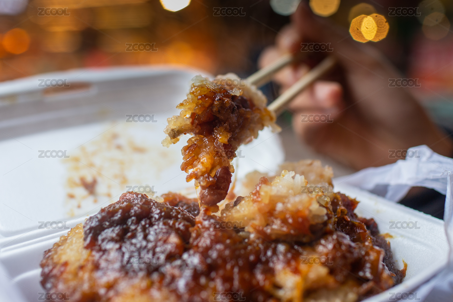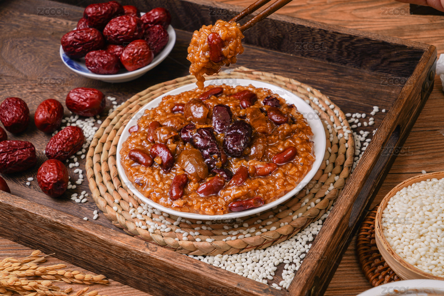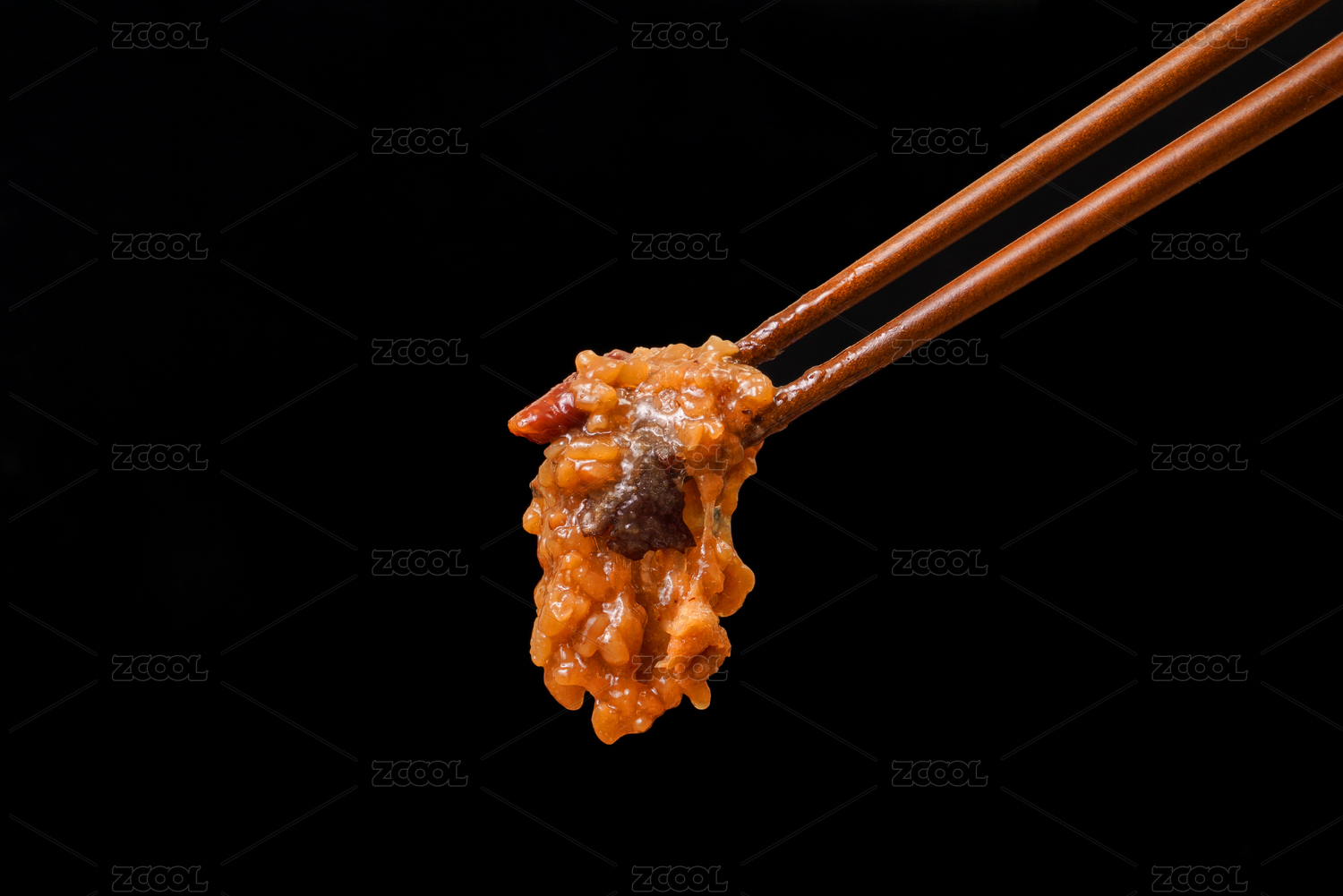 用筷子夾起來的糯米鏡糕甑糕八寶蜜棗甜飯
