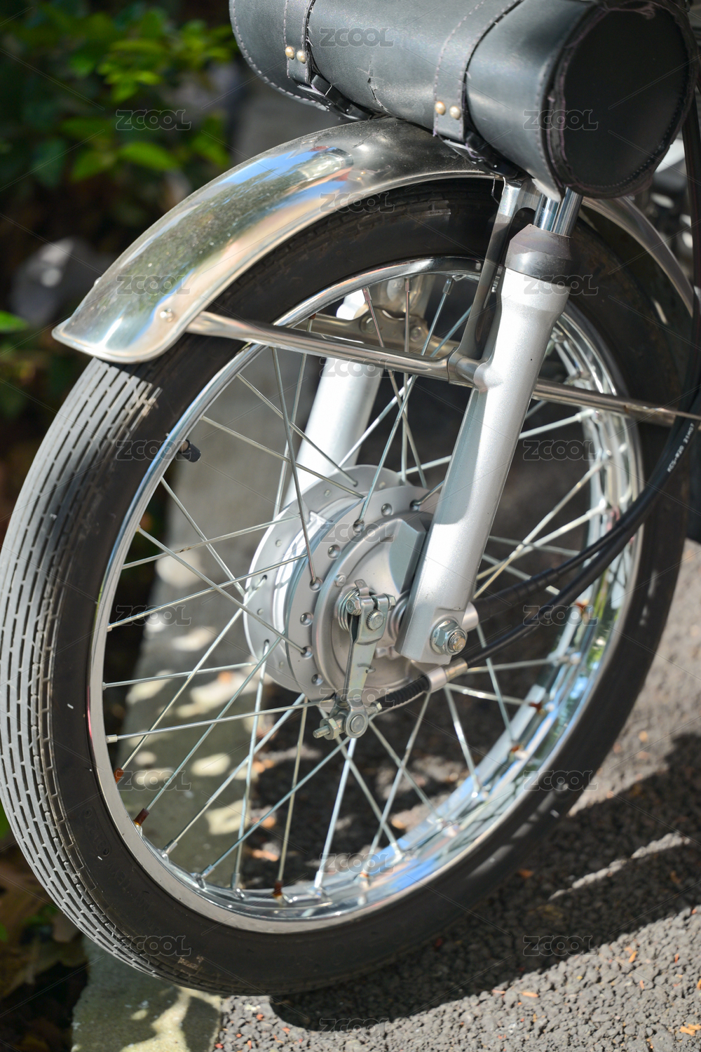 摩托車輪胎和輪轂的特寫鏡頭