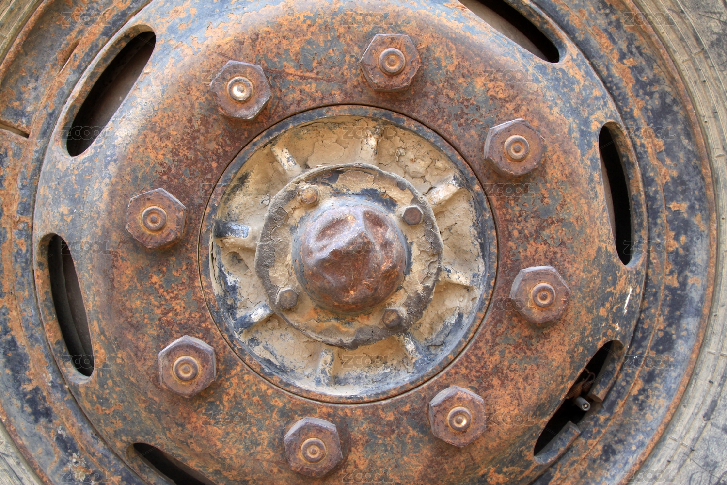 生銹的輪轂特寫