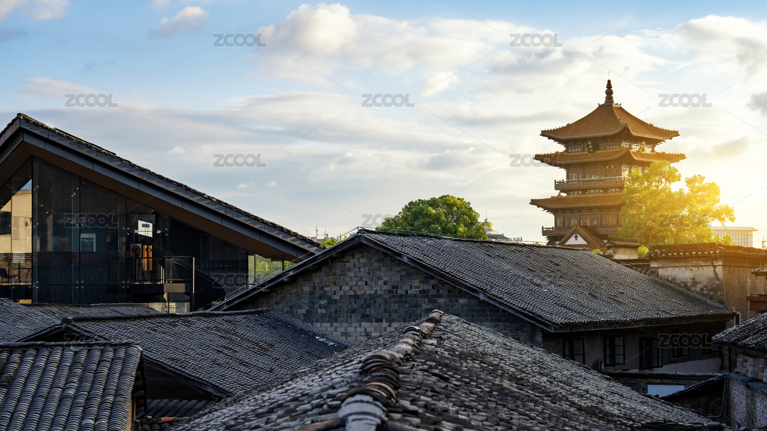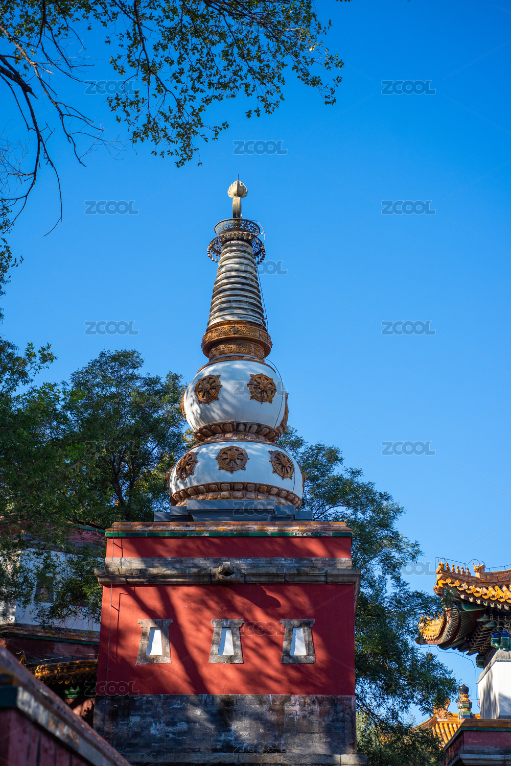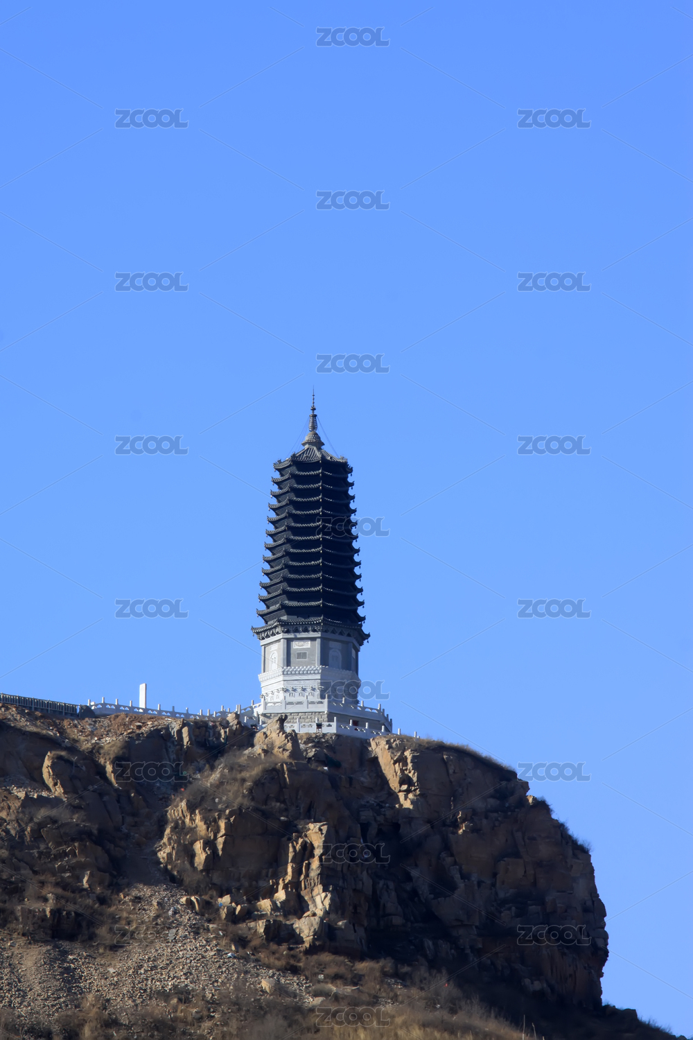 中國(guó)秦皇島市中式古塔與傳統(tǒng)屋檐