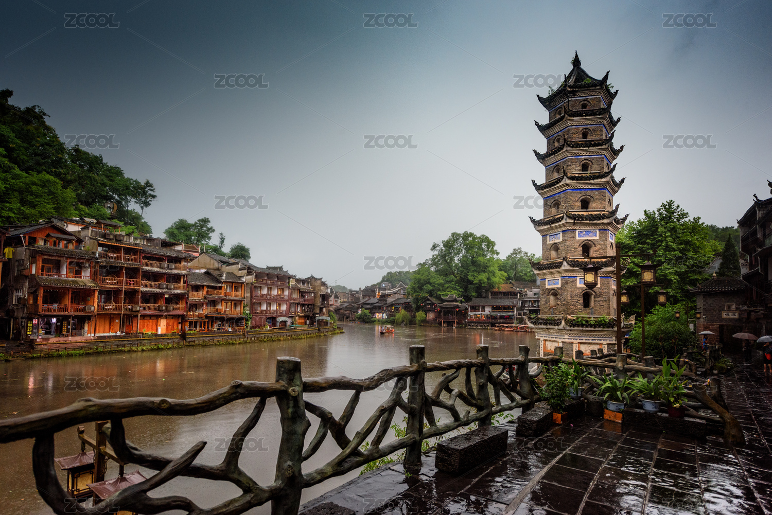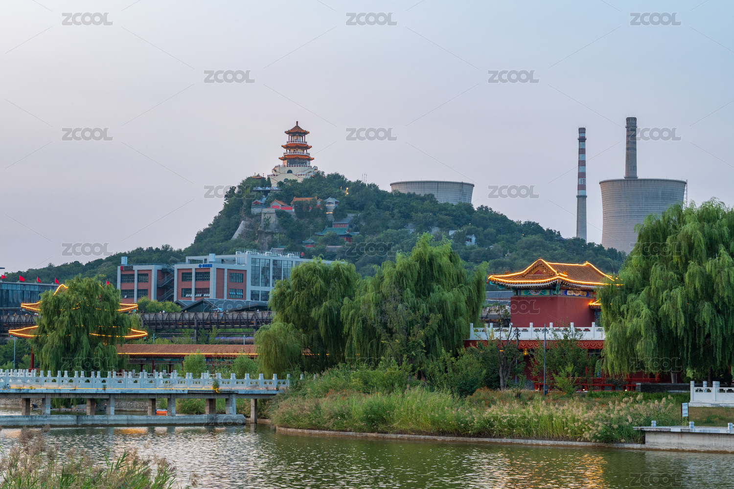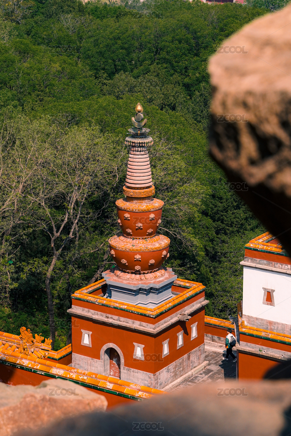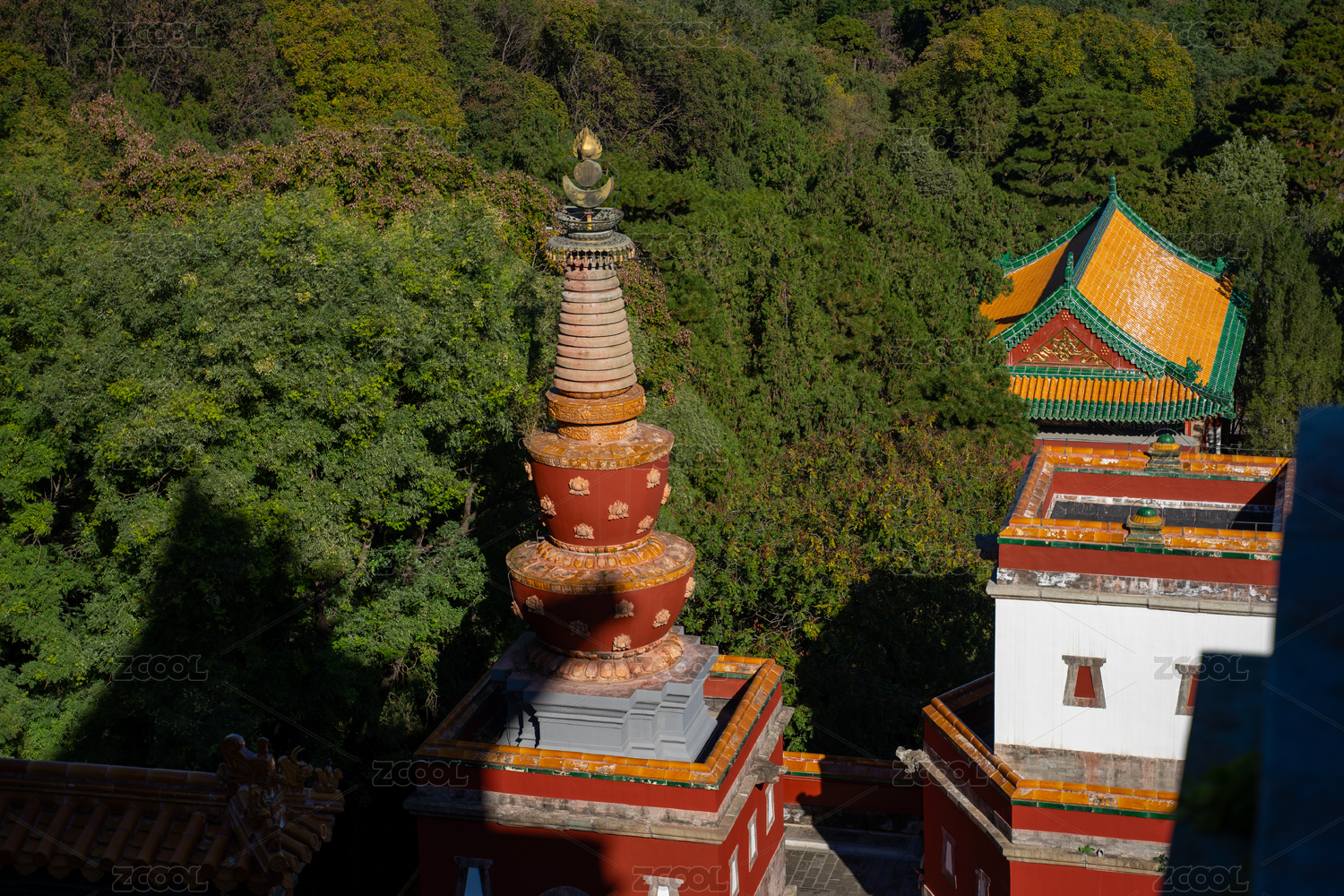 中國(guó)秦皇島市中式古塔與傳統(tǒng)屋檐