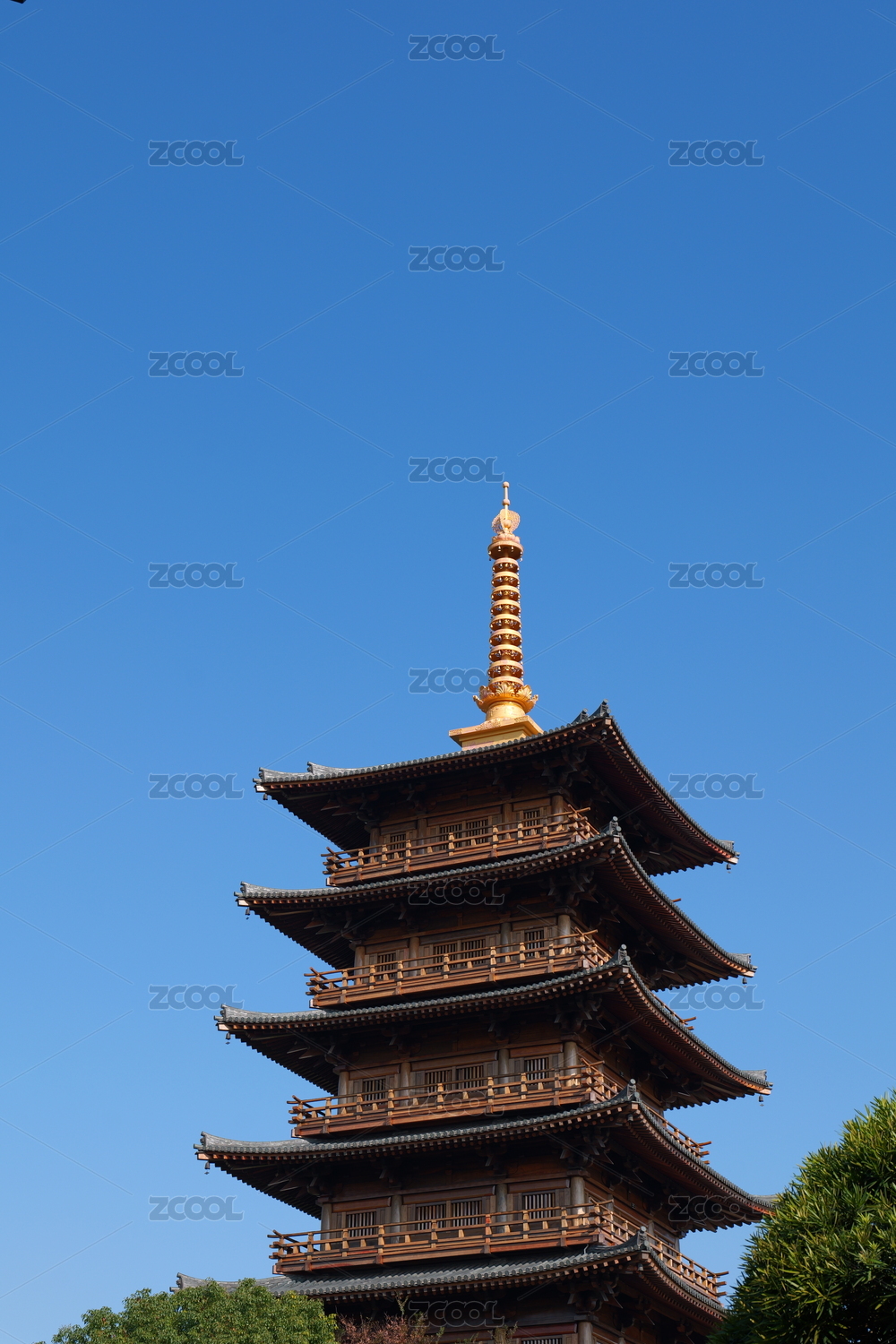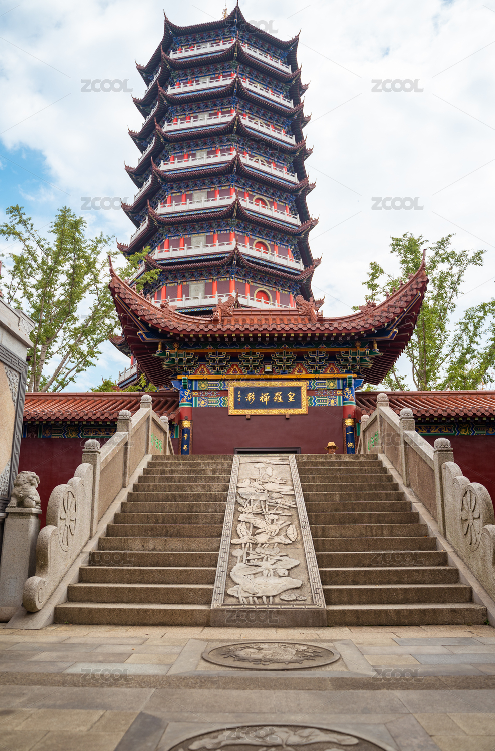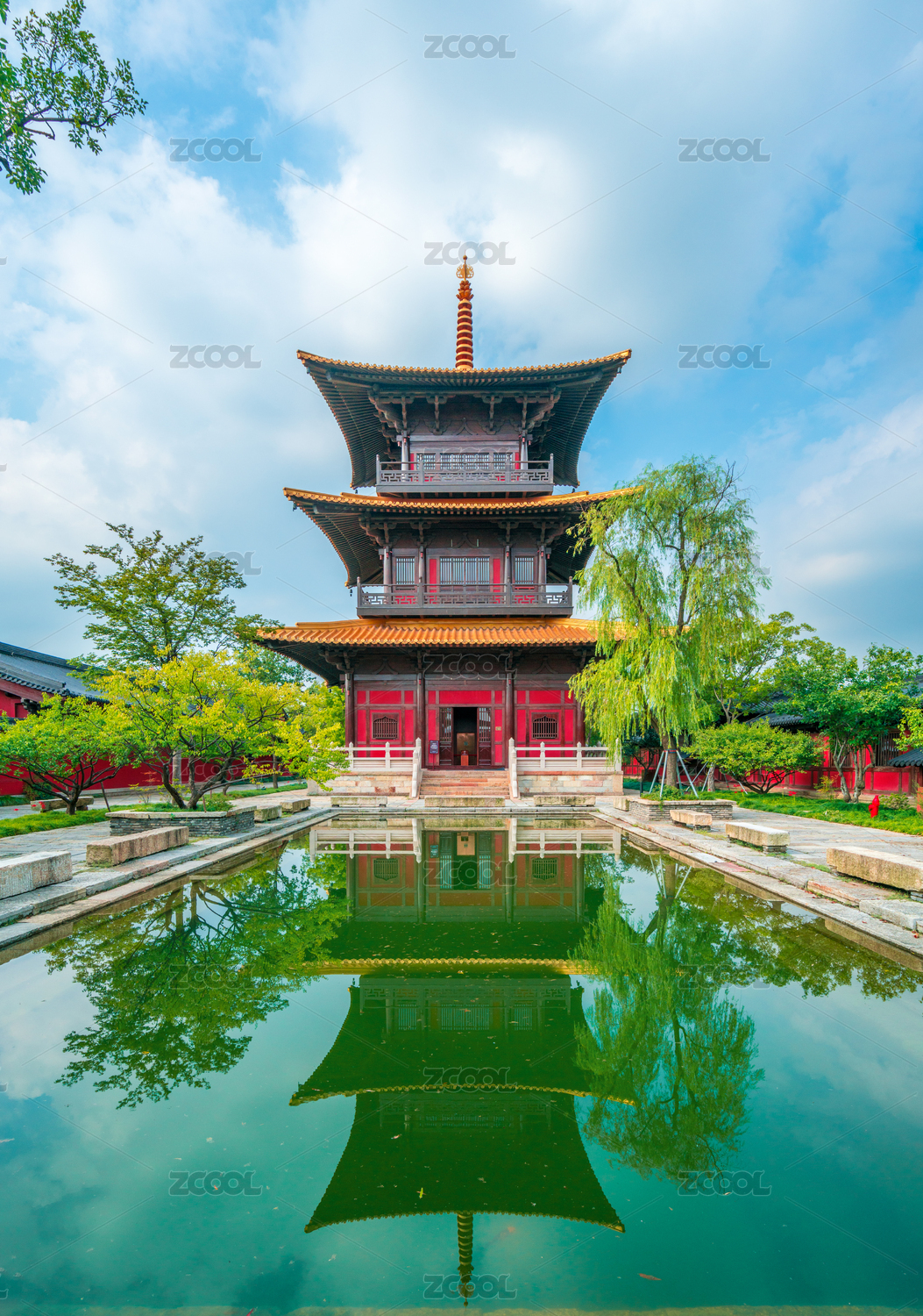 中國(guó)宗教文化江南寺廟廣富林古塔建筑景觀