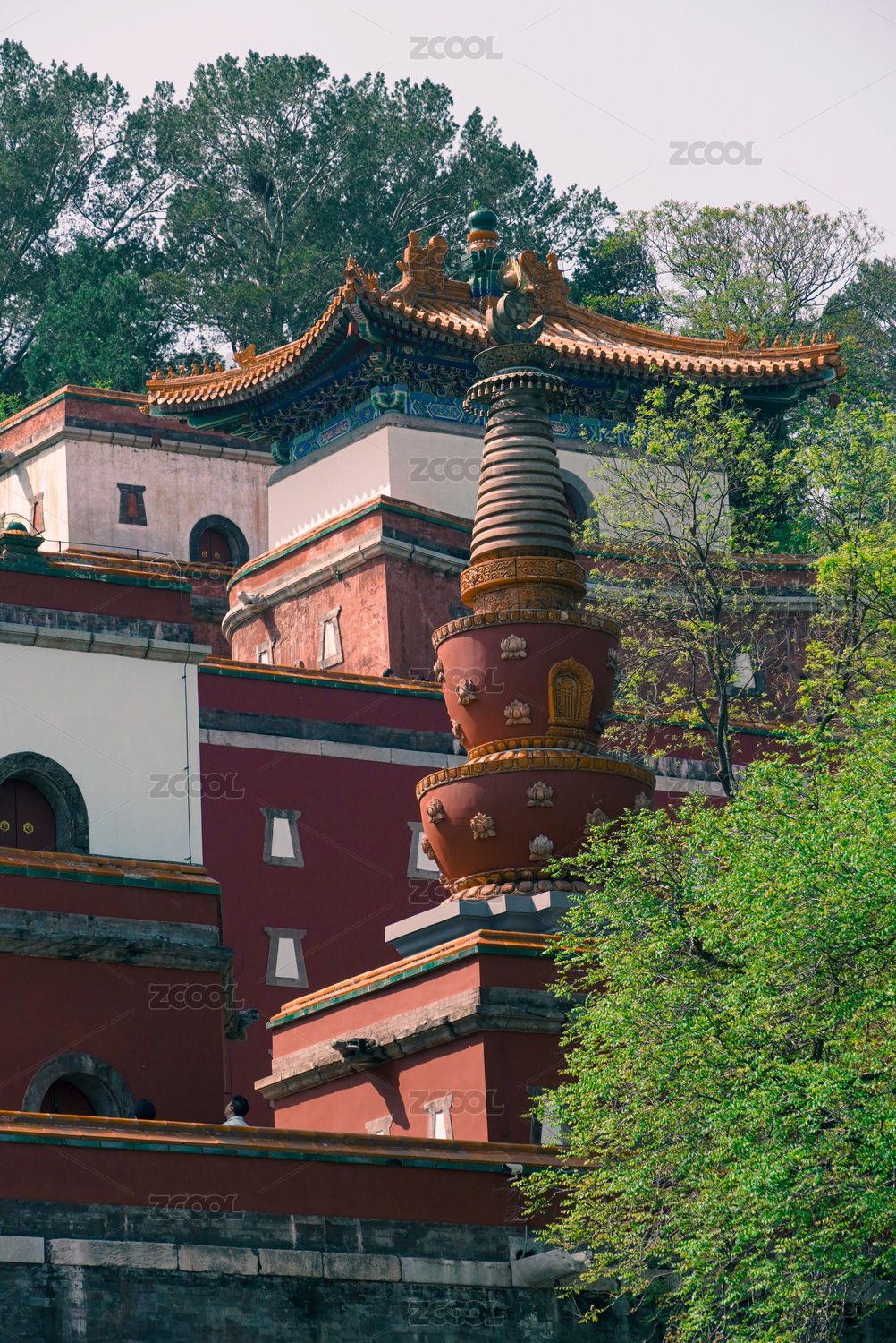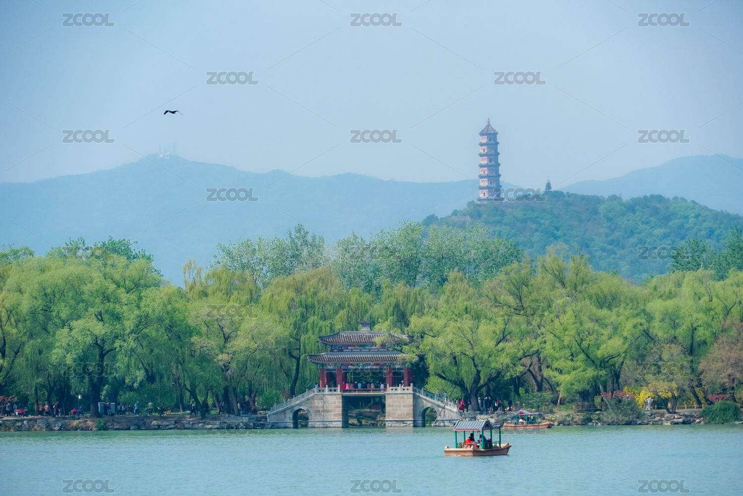 頤和園古塔林間靜立,紅墻黃瓦映綠蔭