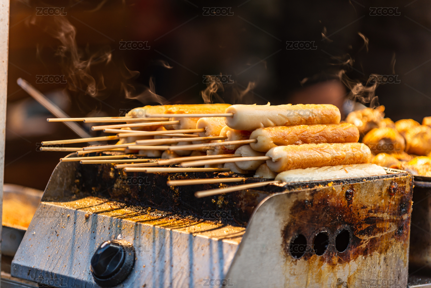鐵板爐上的烤火腿腸