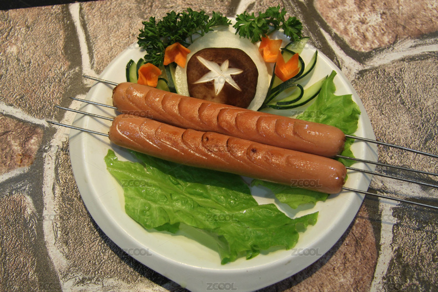 一盤烤火腿腸
