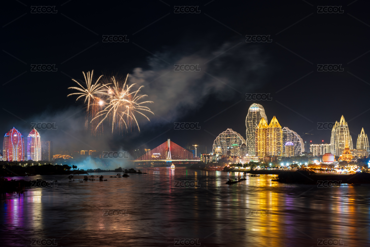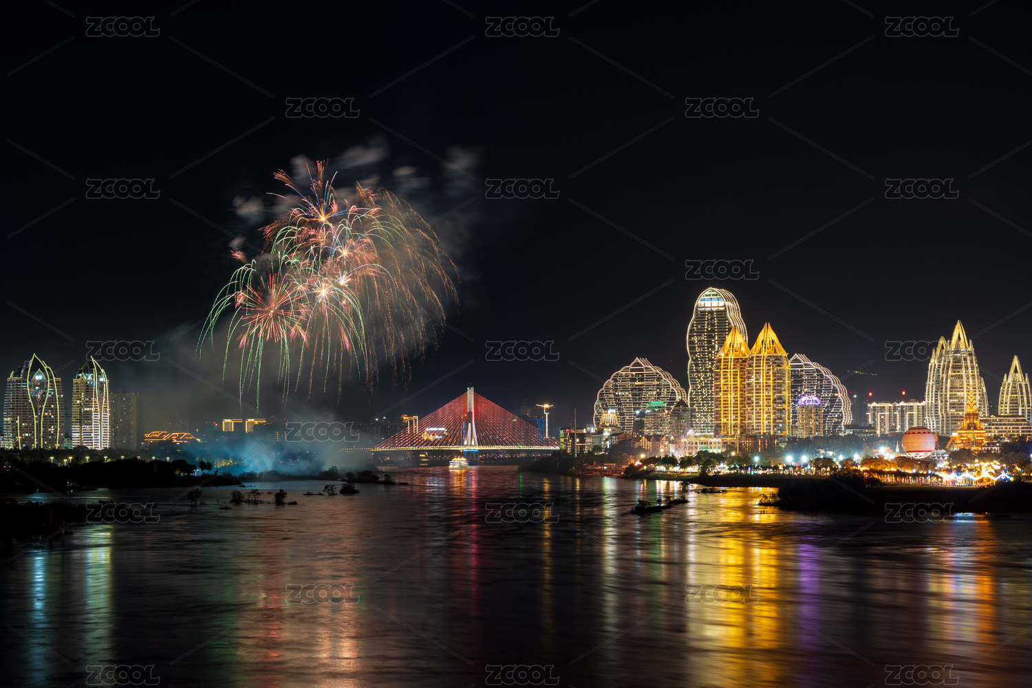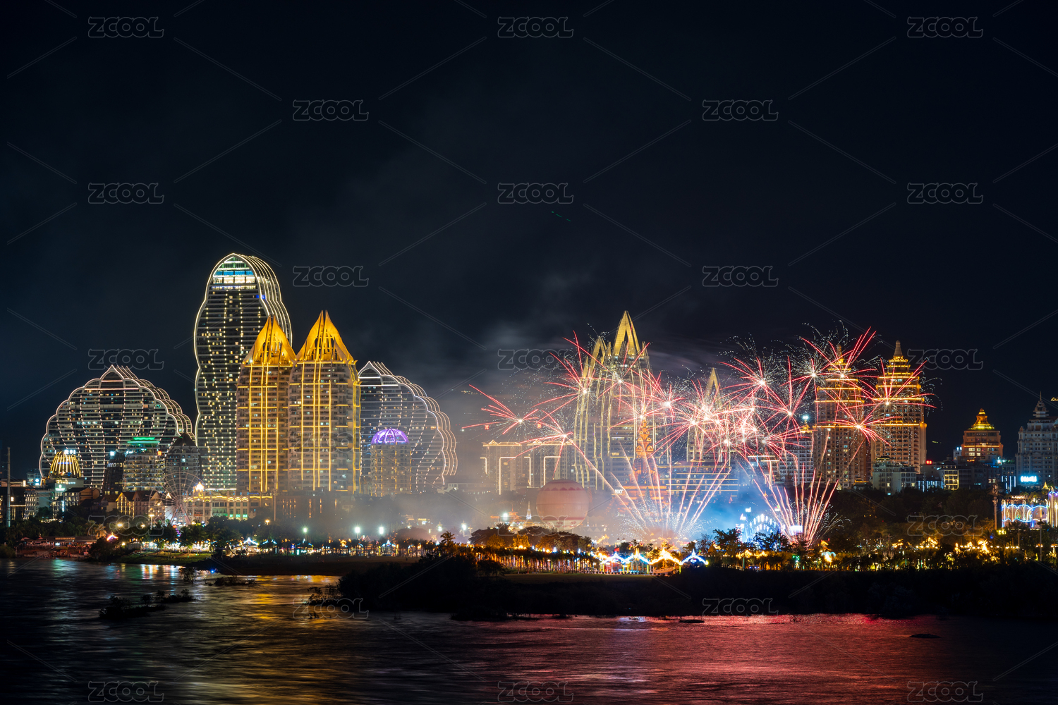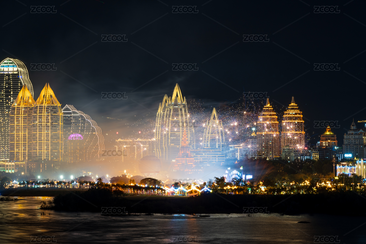 西雙版納告莊西雙景夜空絢爛煙花秀