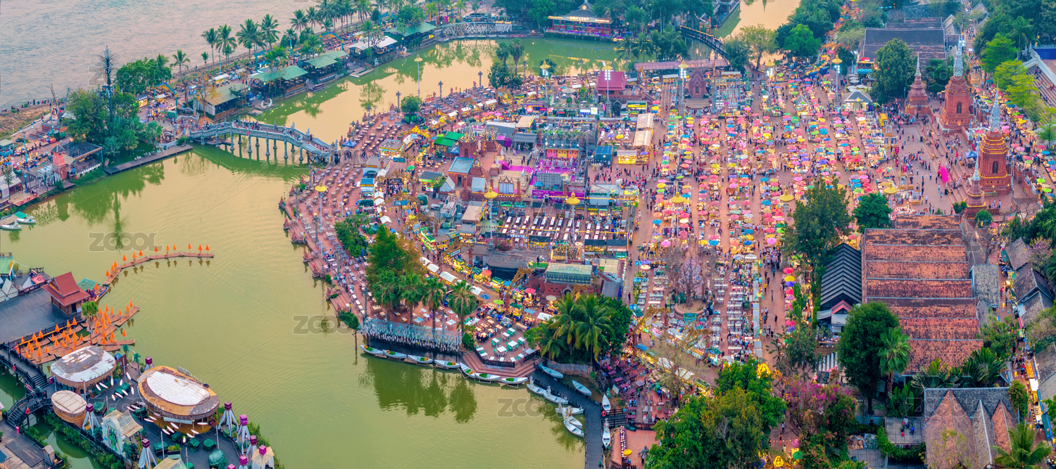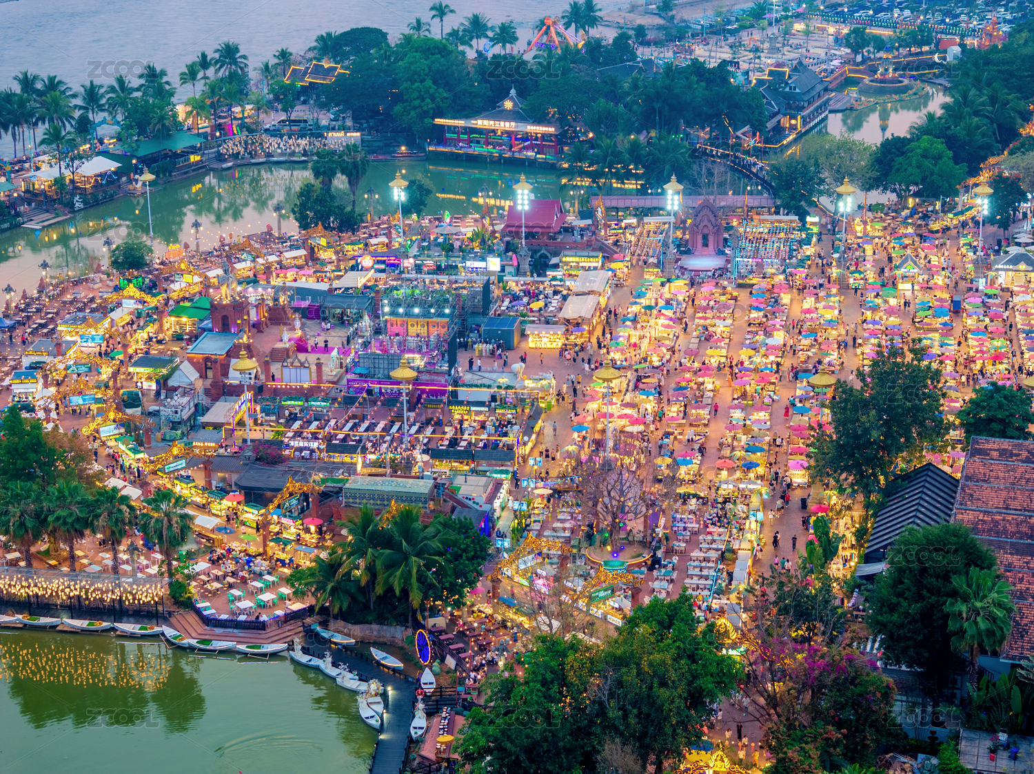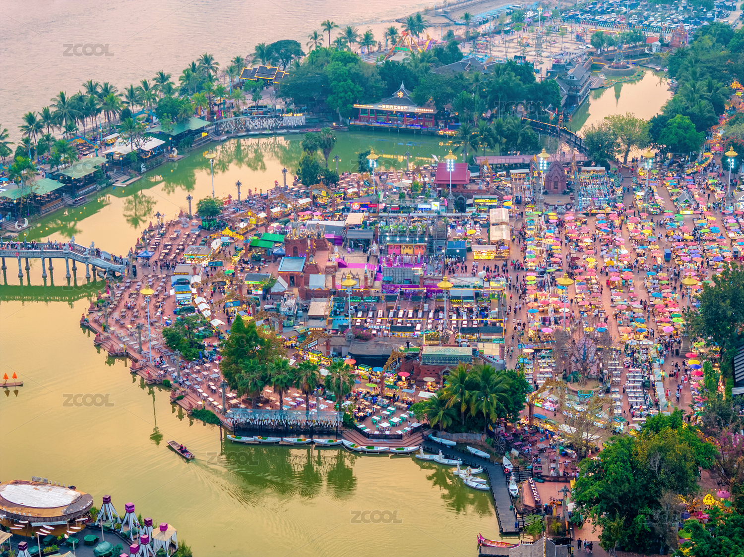 中國云南西雙版納告莊西雙景星光夜市航拍