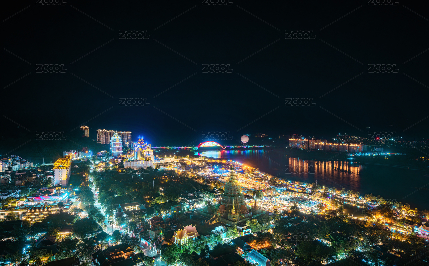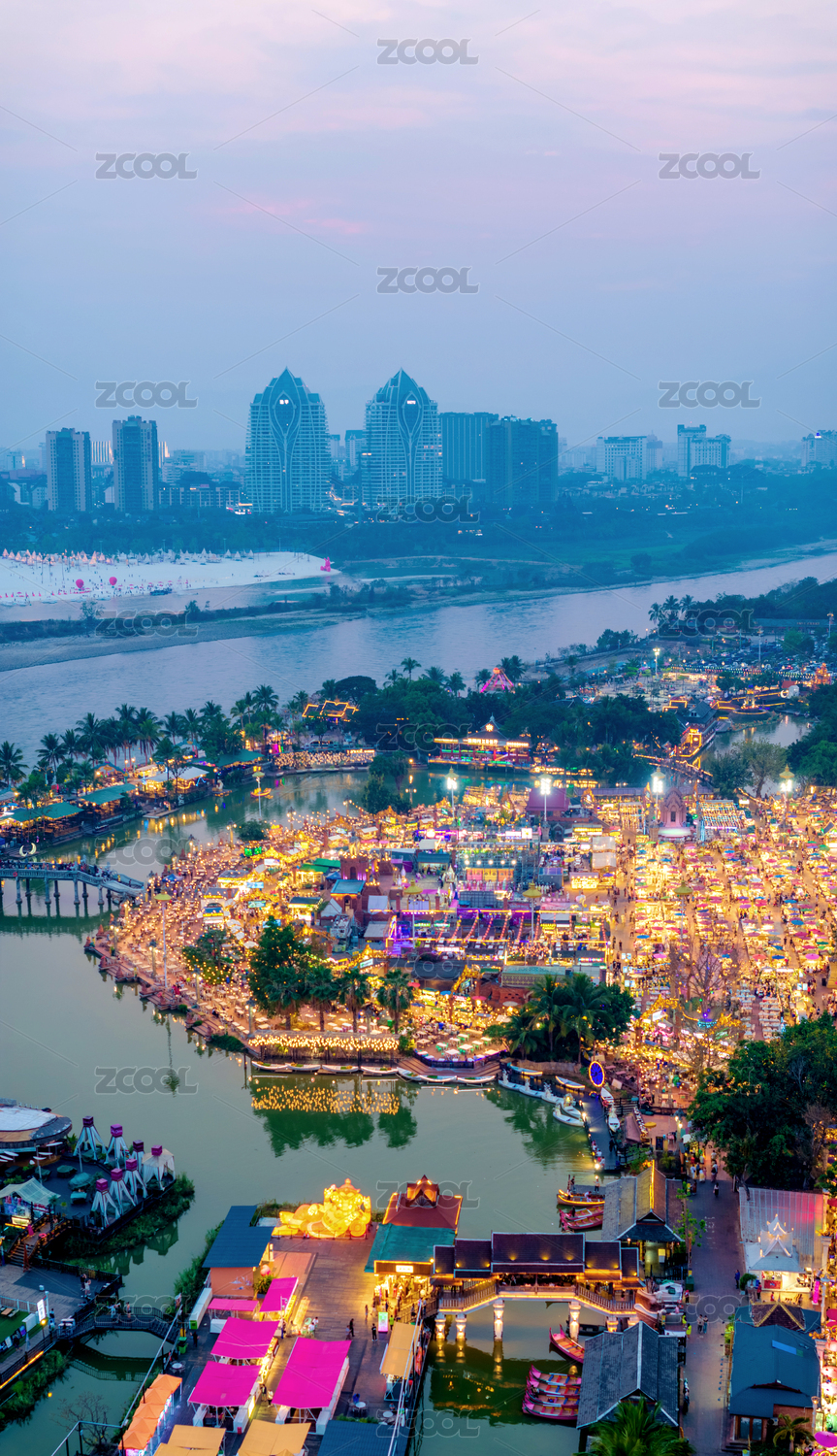 中國云南西雙版納景洪告莊西雙景城市夜景