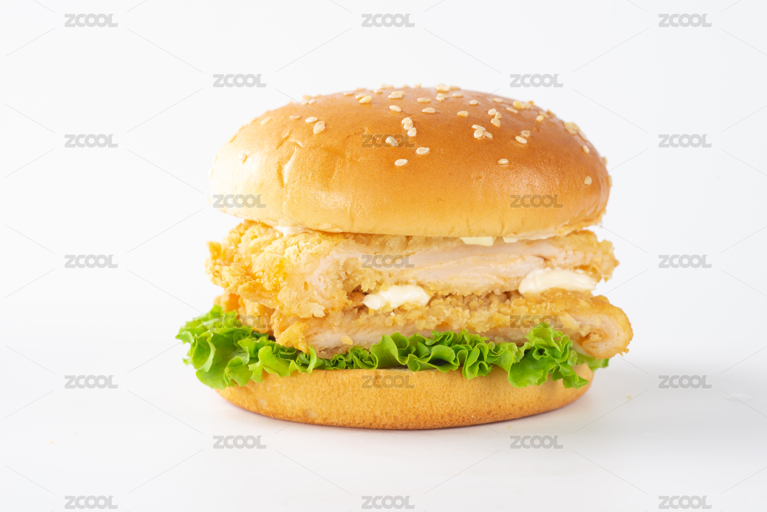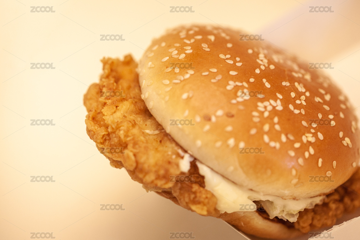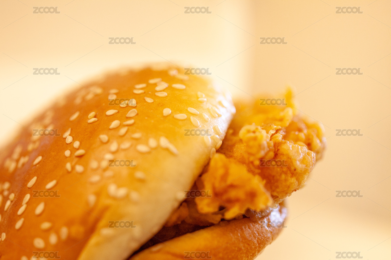 高熱量食物,一個(gè)雞肉漢堡特寫(xiě)