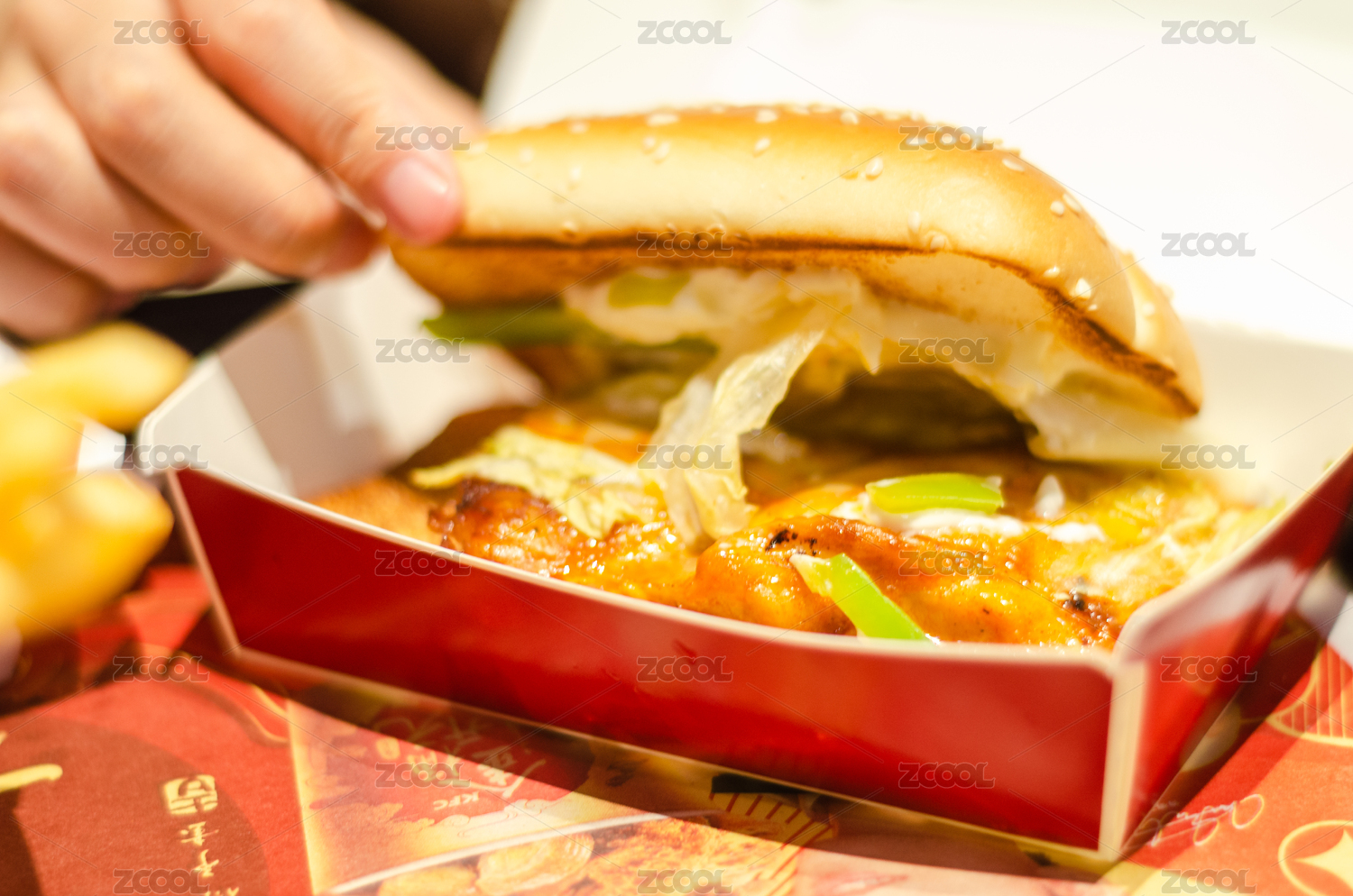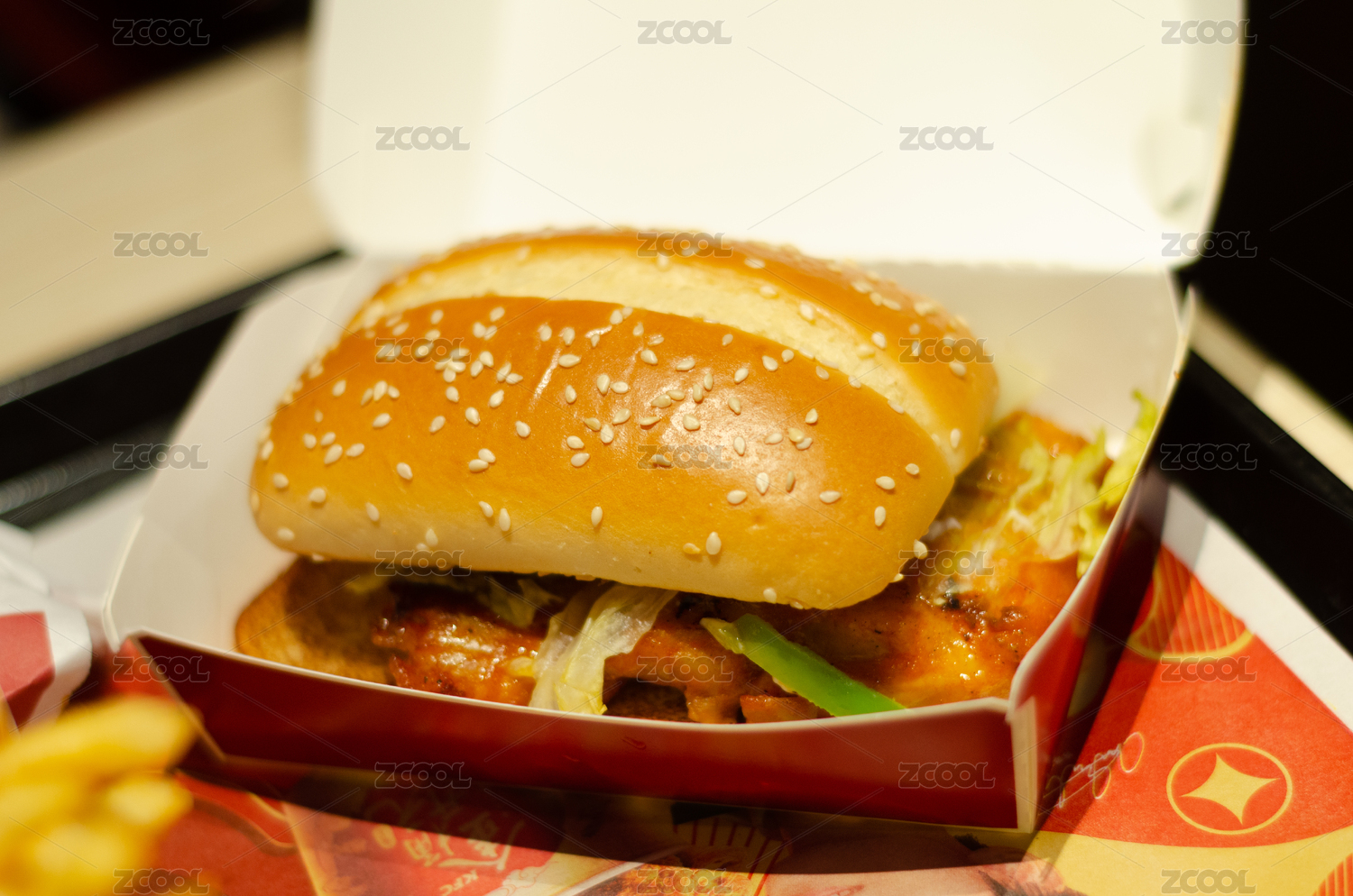 快餐美食雞肉漢堡特寫(xiě)
