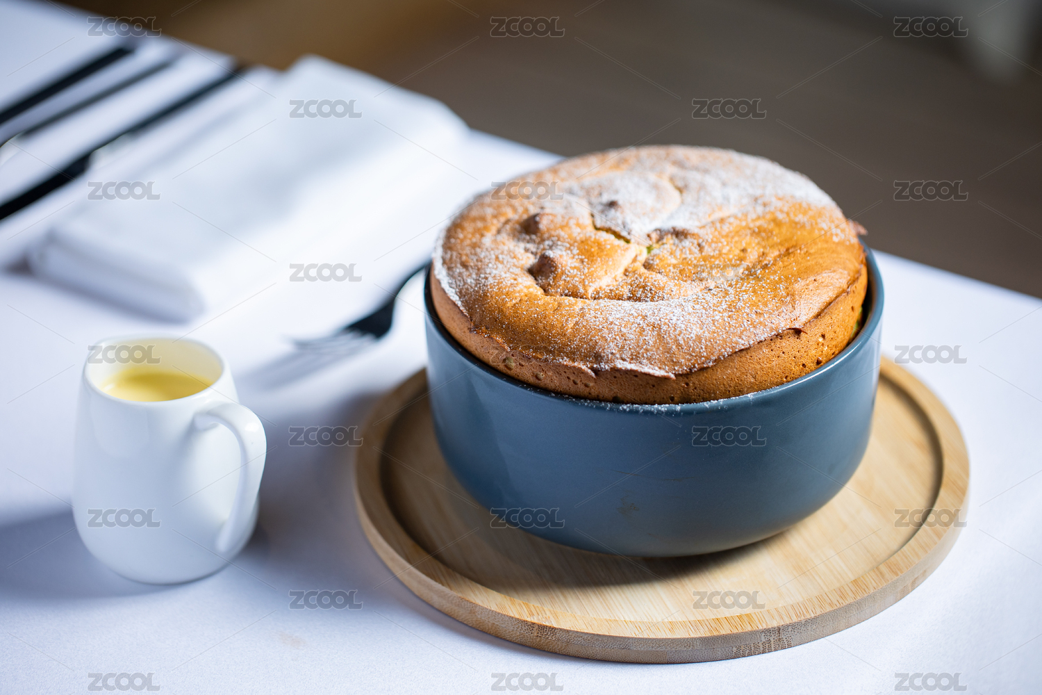 鑄鐵鍋里的舒芙蕾蛋糕
