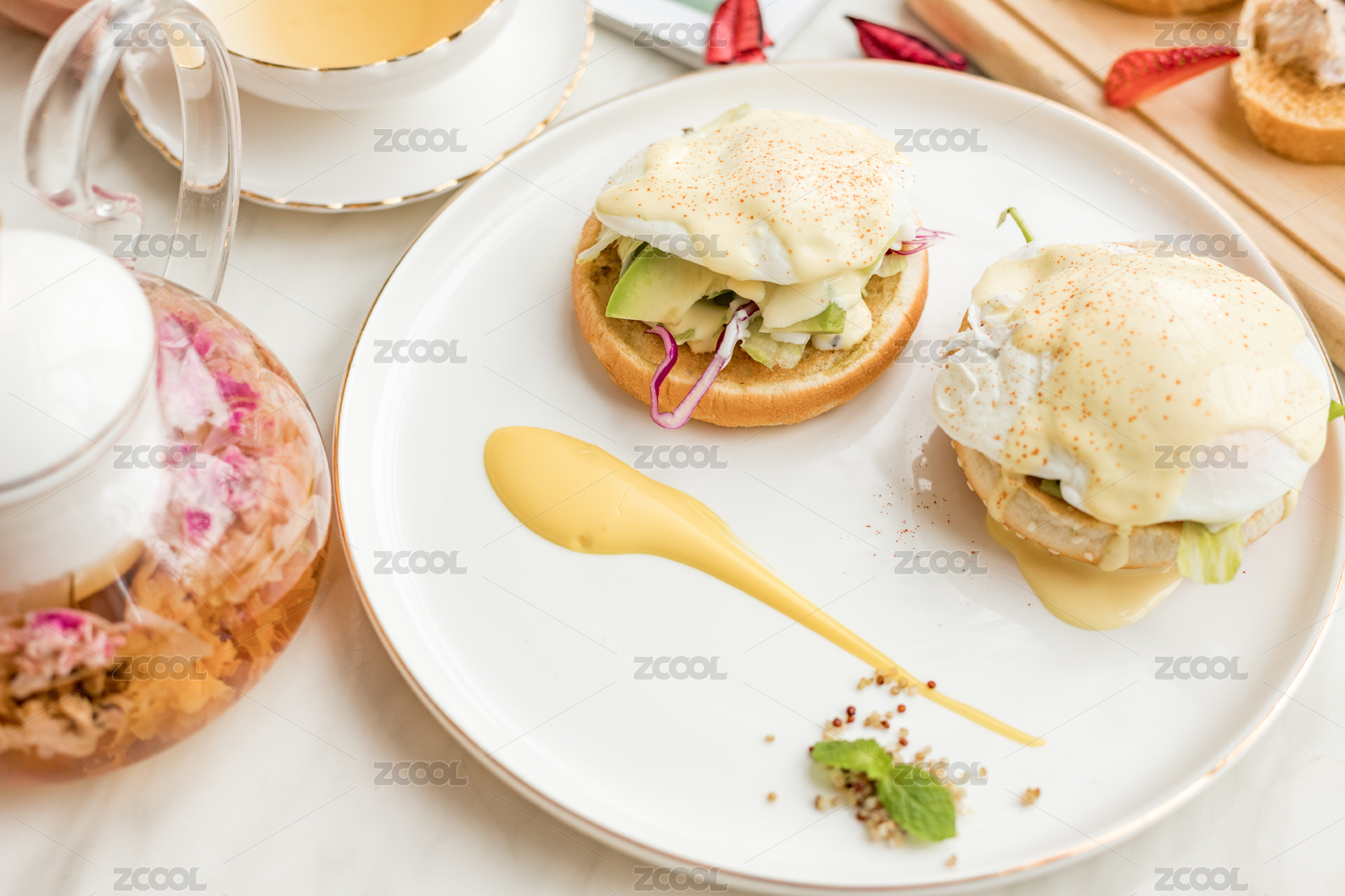 盤子中美味的法式下午茶,花茶與舒芙蕾