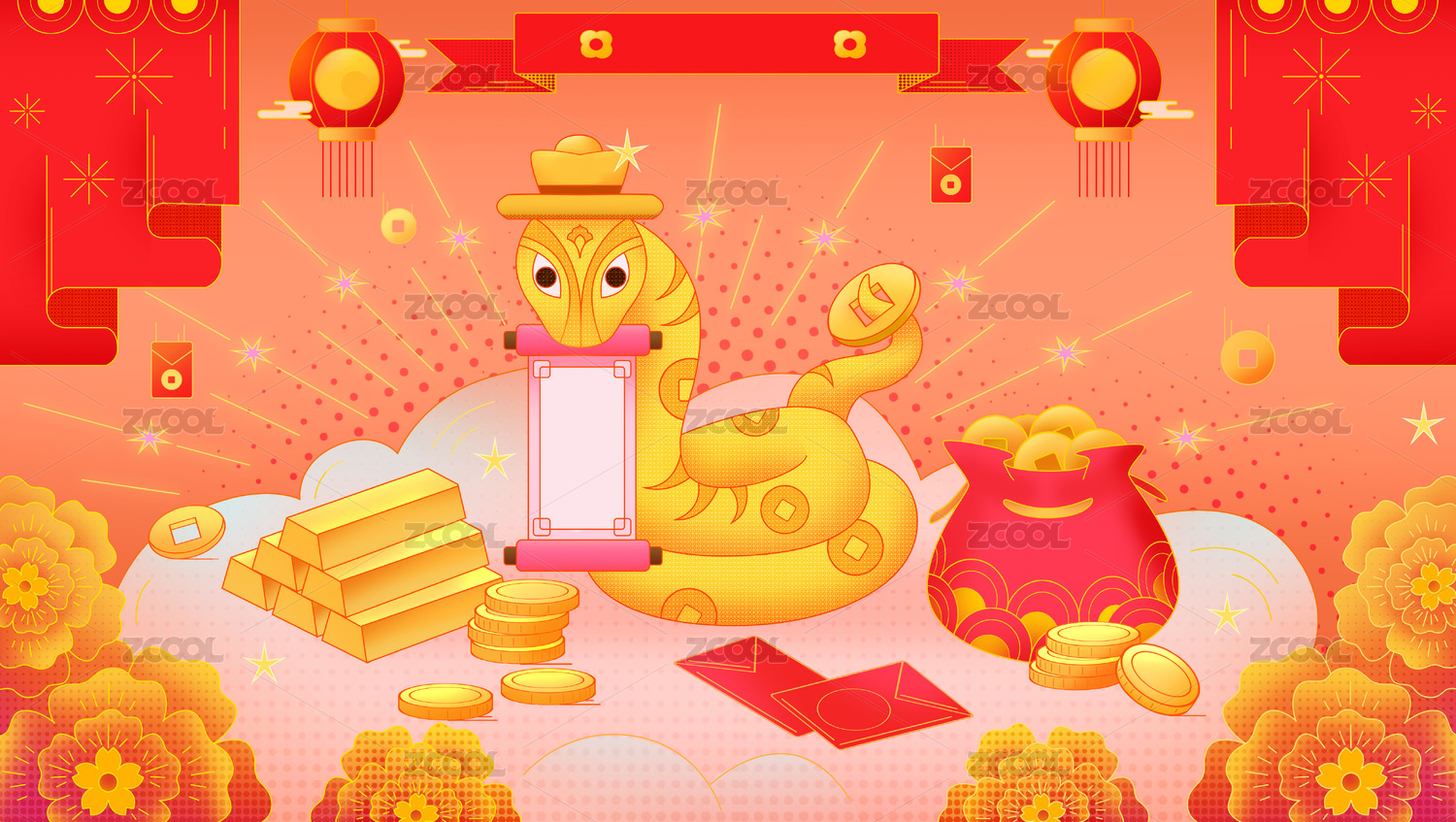 蛇年海報(bào) 插畫 金蛇銜財(cái) 財(cái)運(yùn)亨通