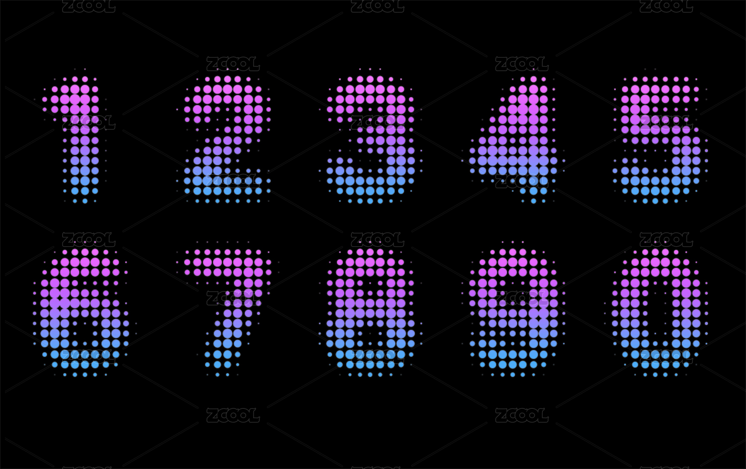 彩色波點數(shù)字藝術(shù)字圓點字像素字