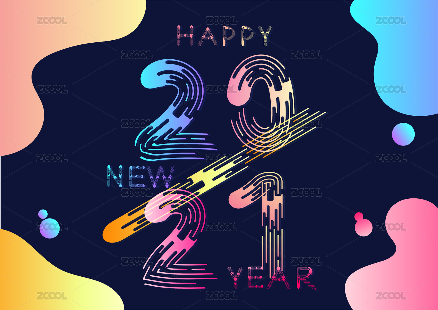 2021新年數(shù)字藝術(shù)字符號的插畫