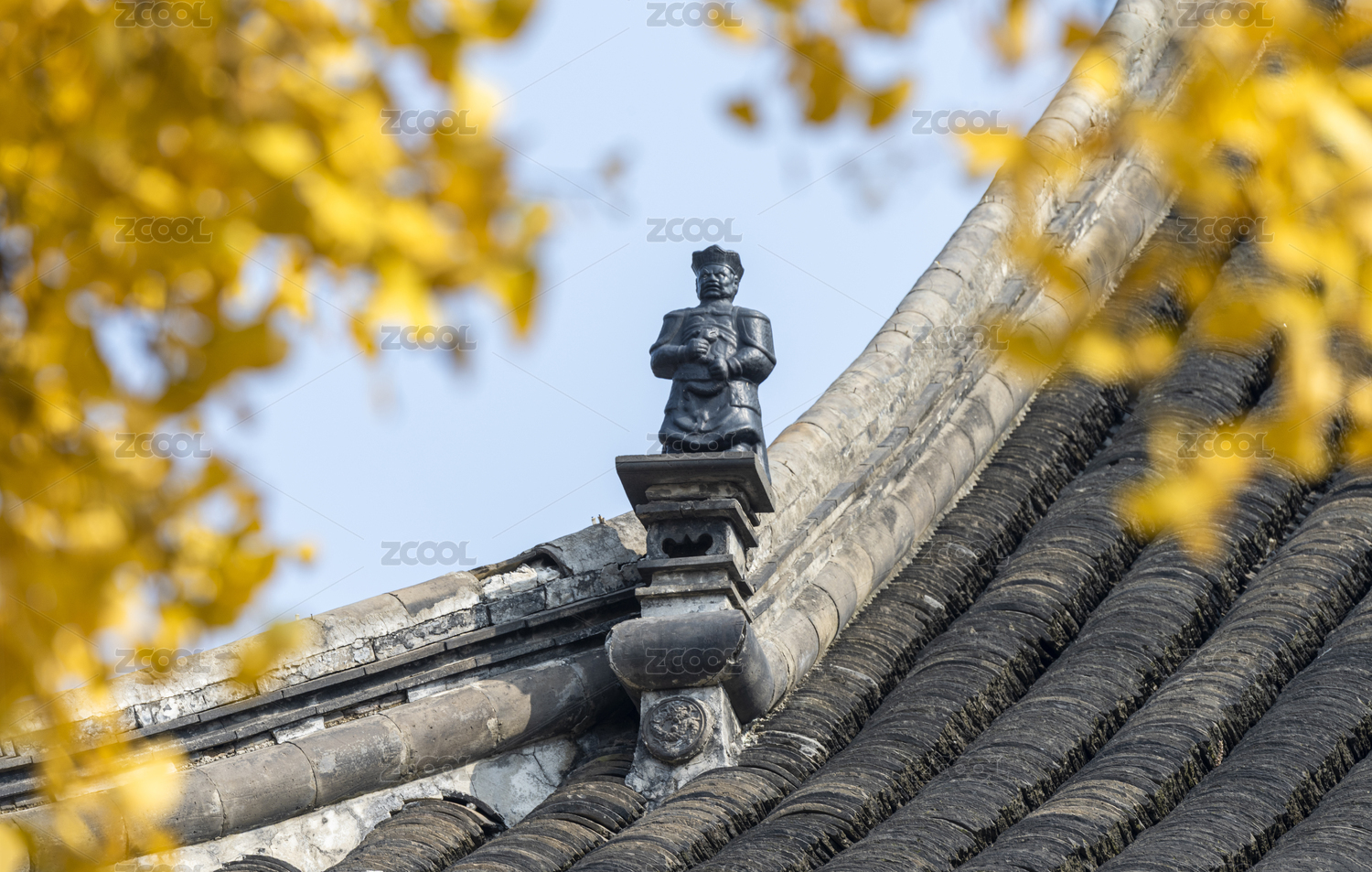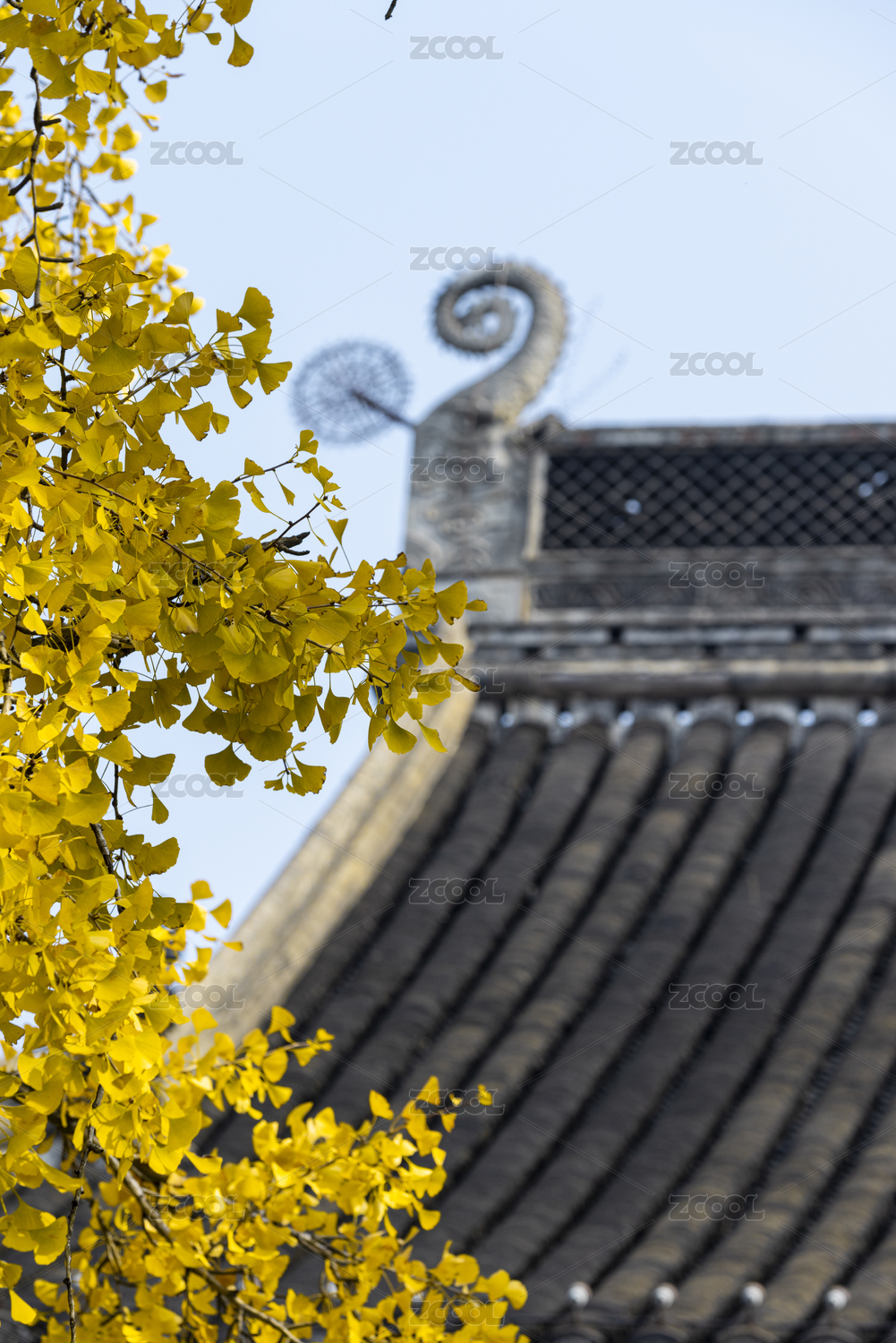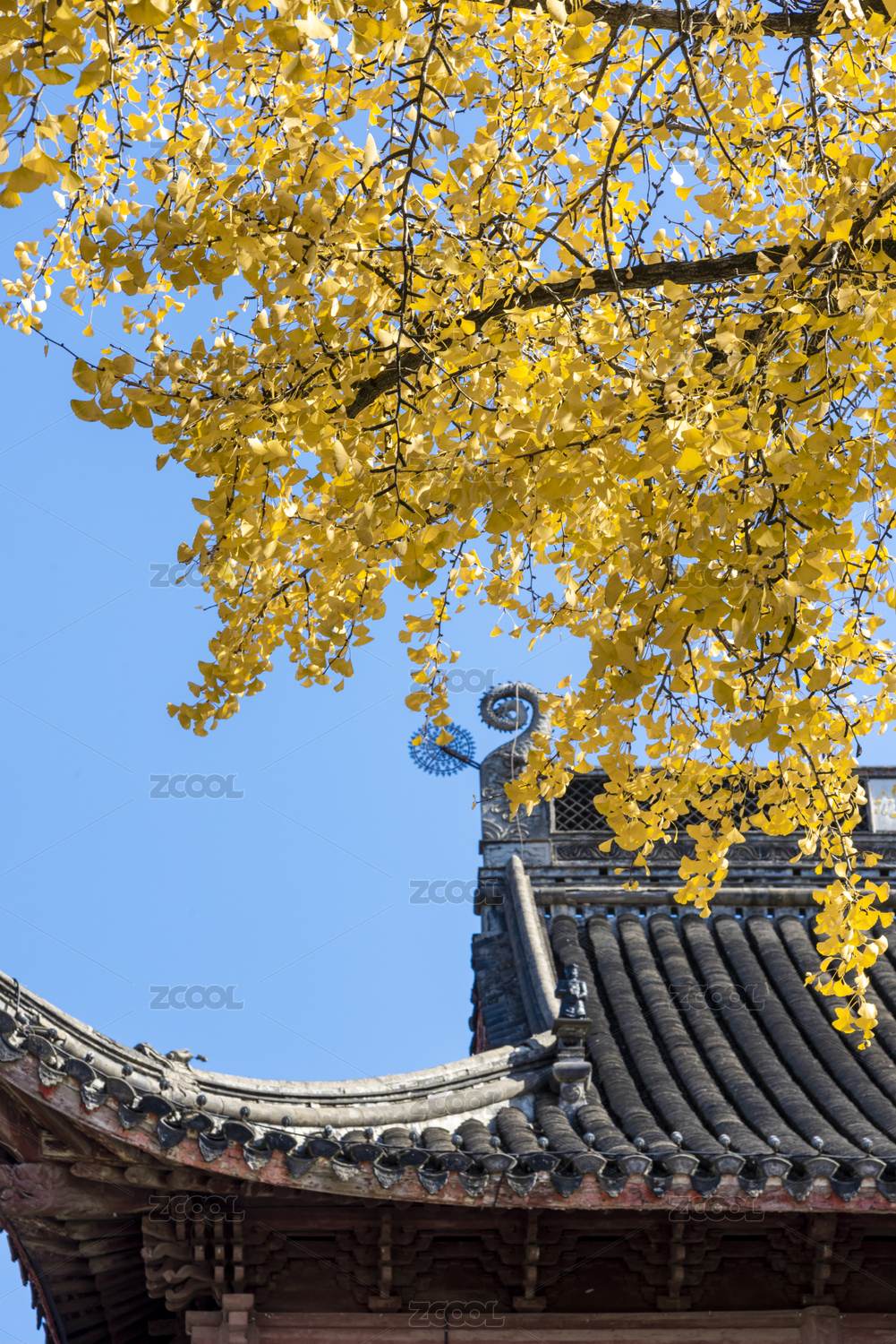 深秋時(shí)節(jié)古寺中金黃色的銀杏