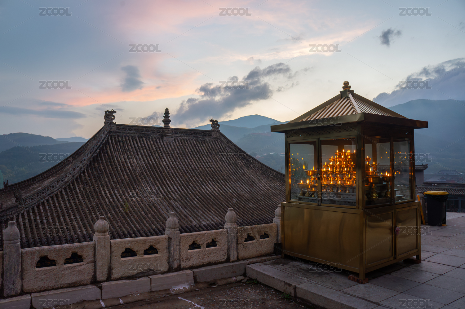 山西五臺(tái)山古寺暮色油燈香火