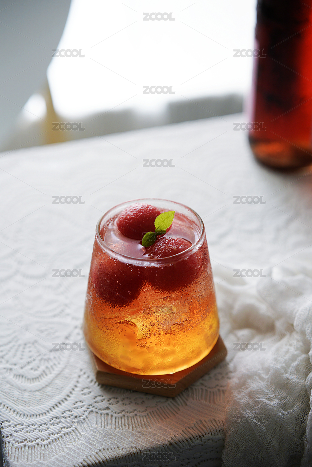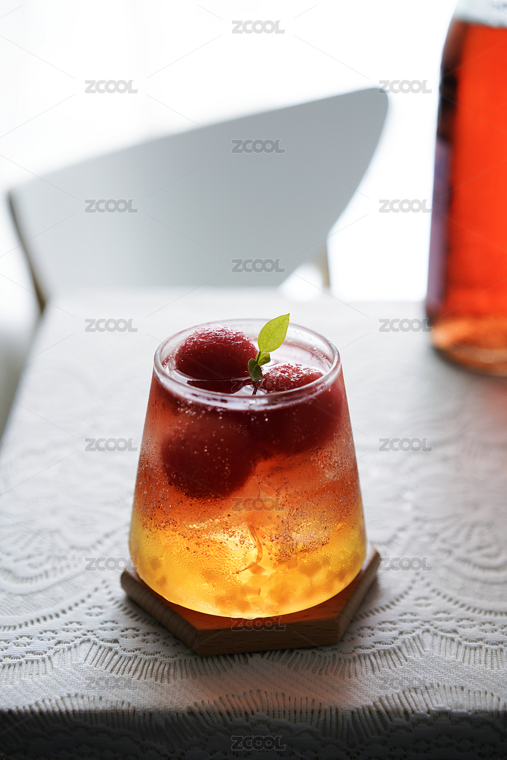 放在桌子上的不同角度的西瓜果凍氣泡酒冷飲