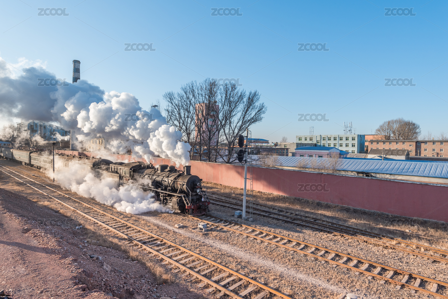 中國遼寧省調(diào)兵山市礦場的蒸汽機車和鐵軌