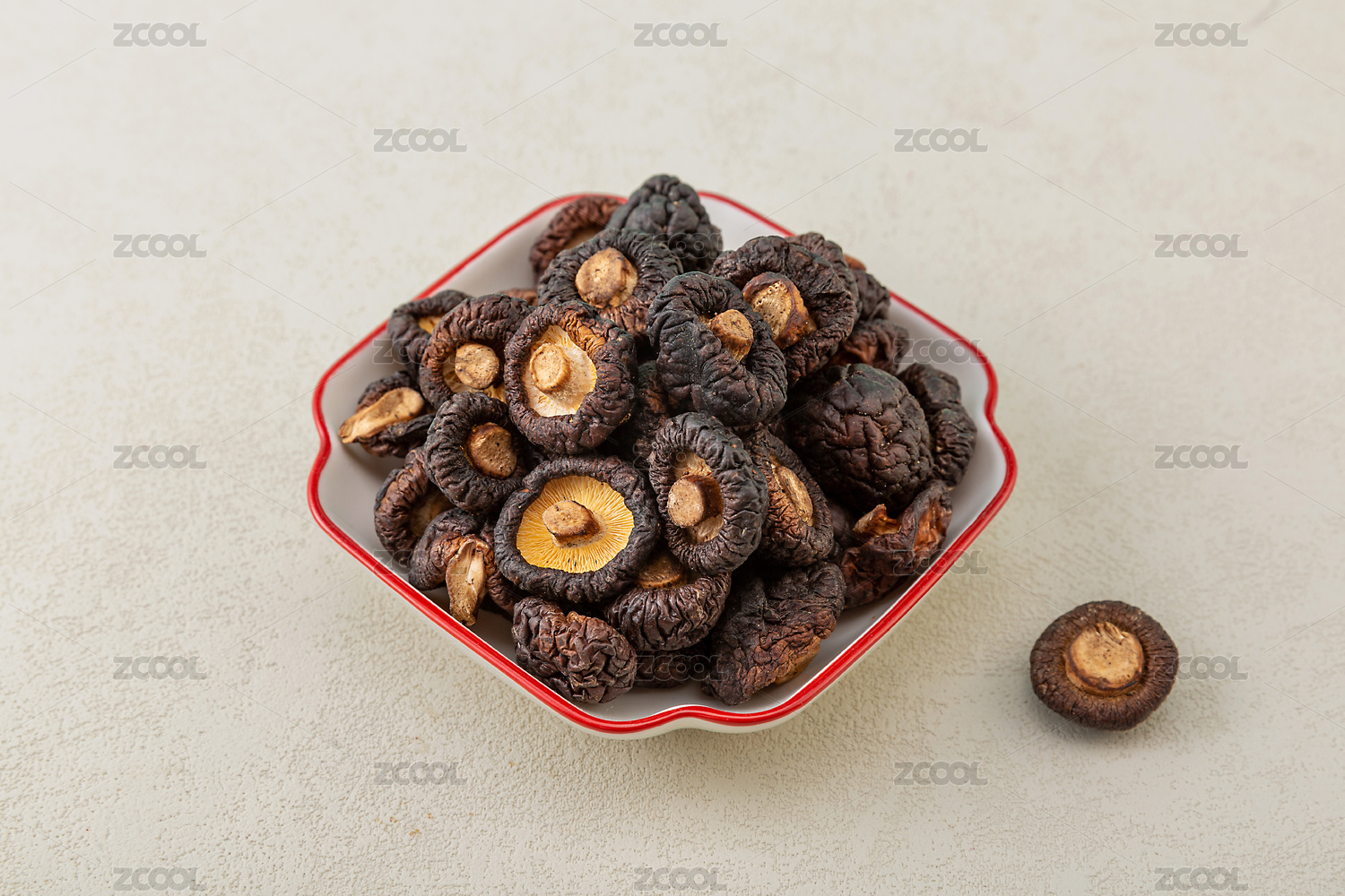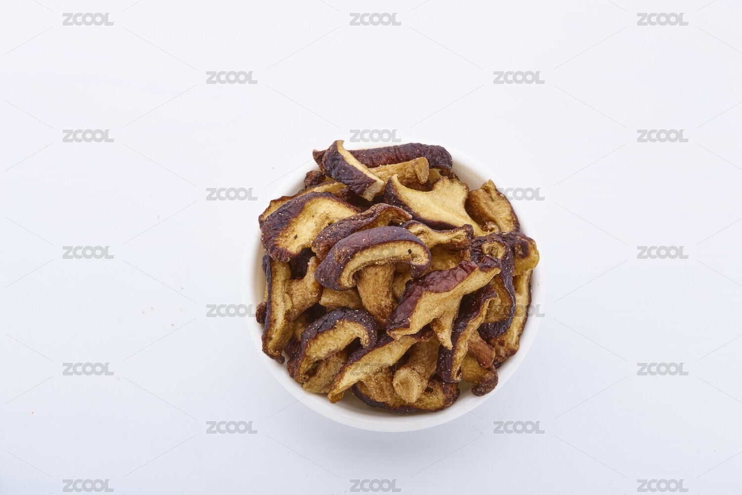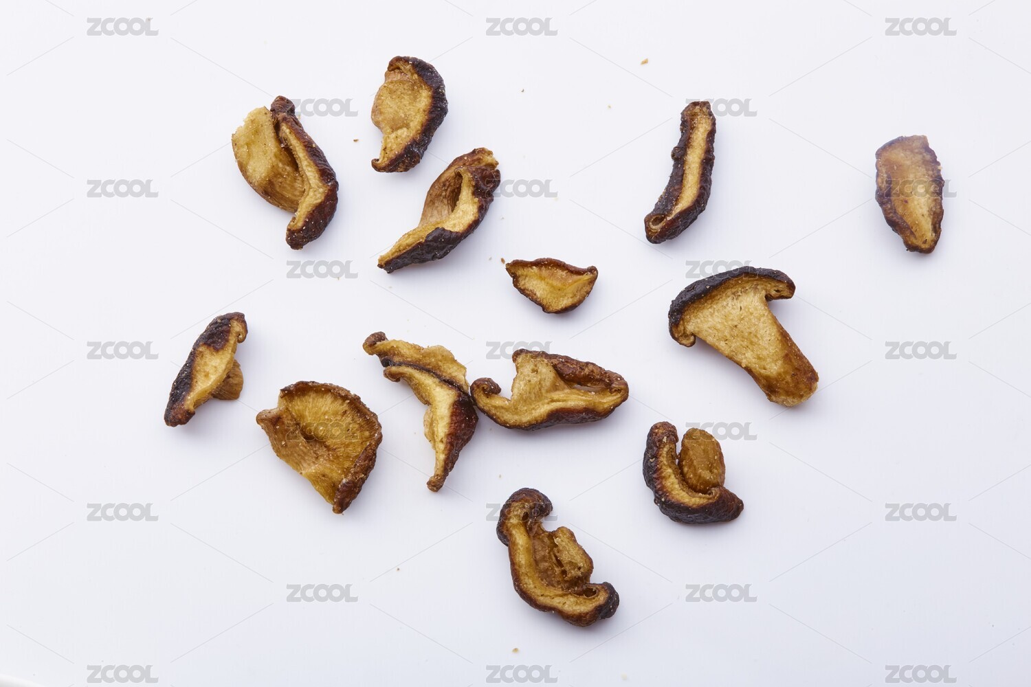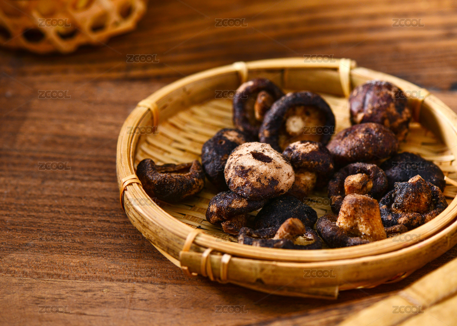木色背景上擺放的蔬菜干香菇脆