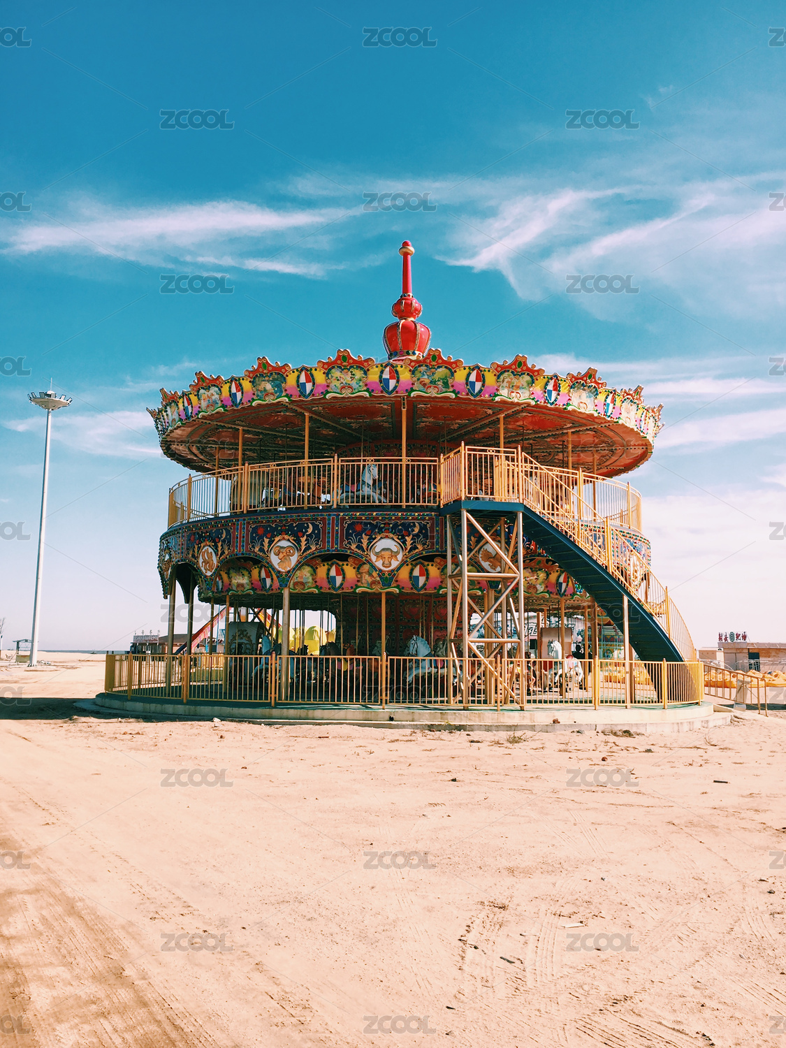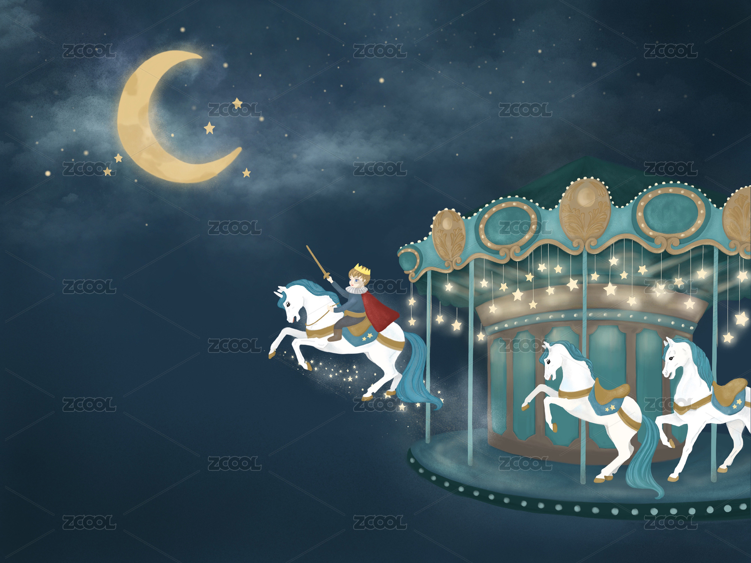 兒童節(jié)小男孩王子騎著旋轉(zhuǎn)木馬
