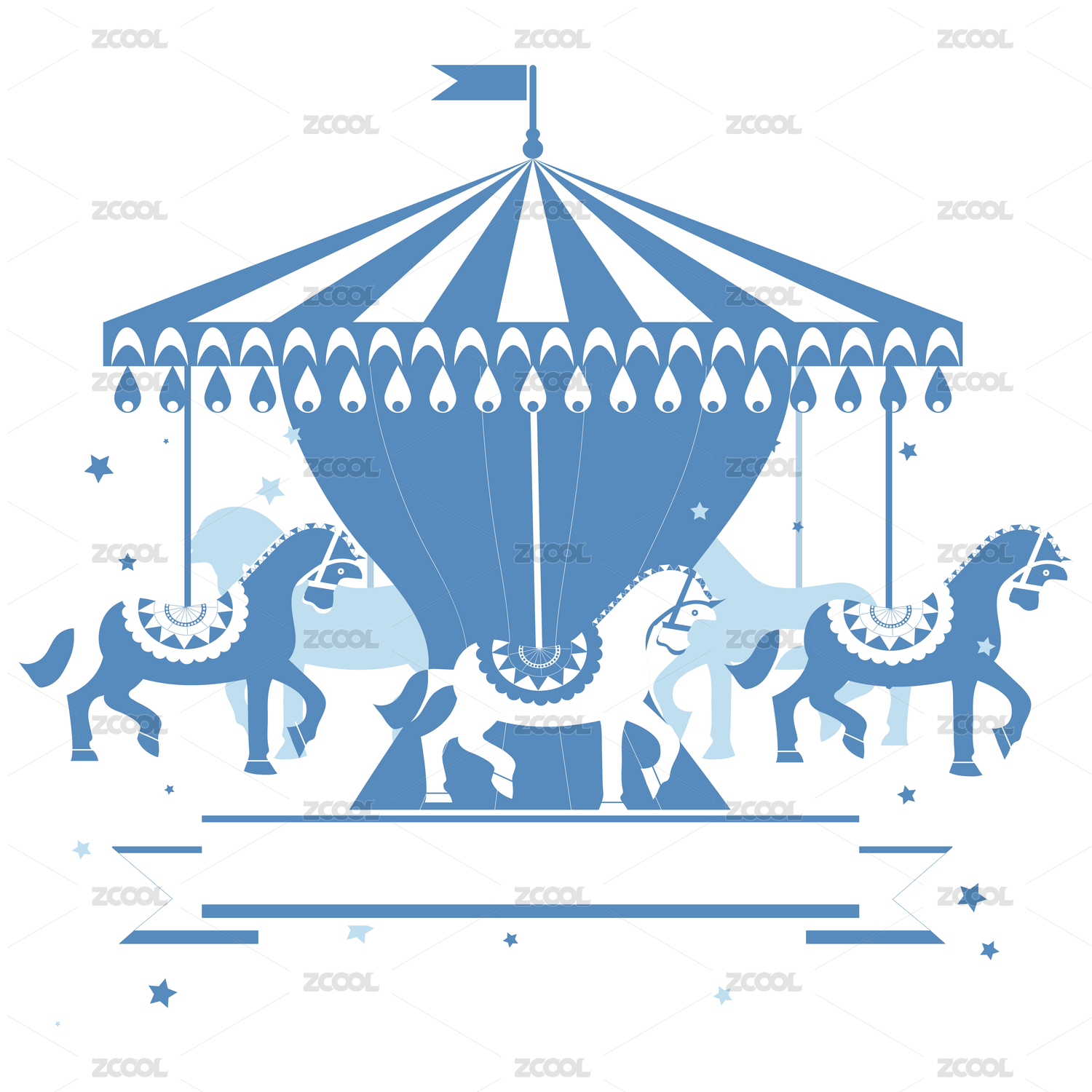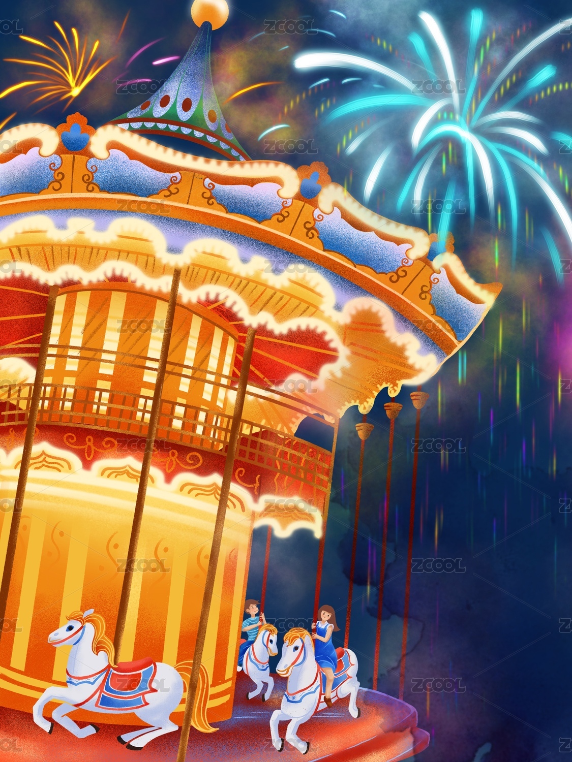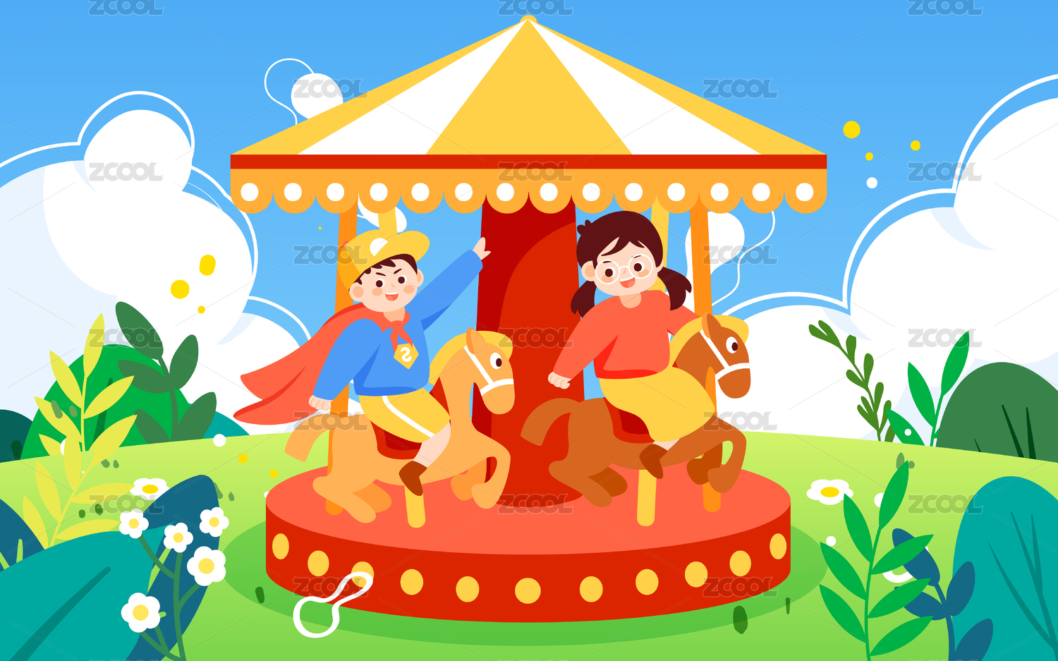 兒童插畫乘坐旋轉(zhuǎn)木馬兒童節(jié)邀請